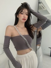 ワンショルダーチューブトップセクシーなヨーロッパとアメリカのTシャツ女性の夏の短いオフショルダータイトフィット長袖トップ ショート ロング サマー 夏物 ヨーロピアン bstraw36903228789 | beaute25