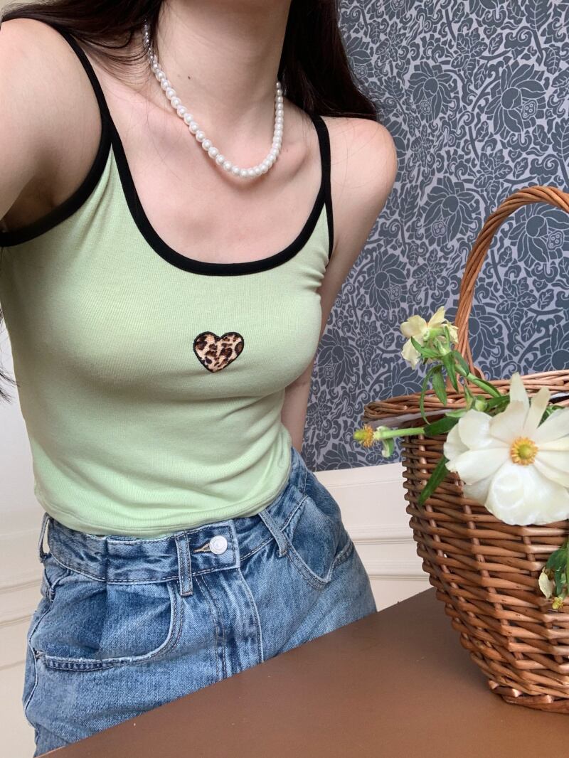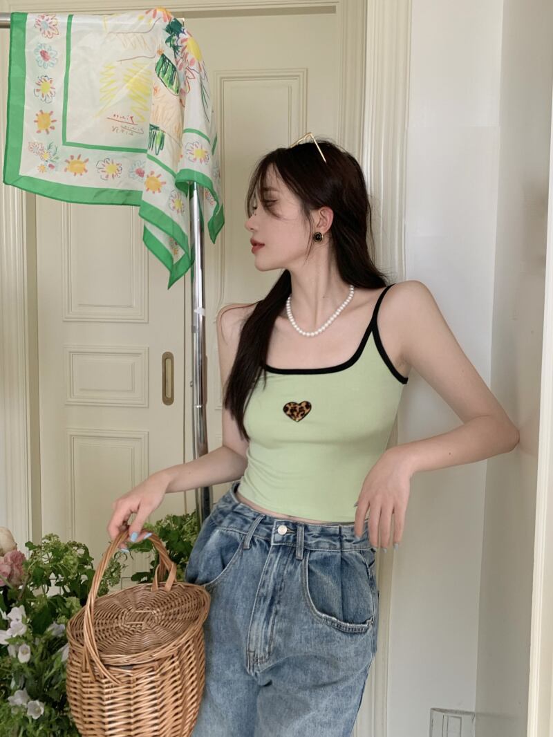 緑のノースリーブの小さなキャミソールの女性の夏の甘い純粋な欲望は、肩にぴったりとフィットするトップスとボトミングシャツを披露したい 大人ガーリー スウィート キュート カジュアル サマー 夏物 ピュア グリーン bstraw18315863241 | beaute25