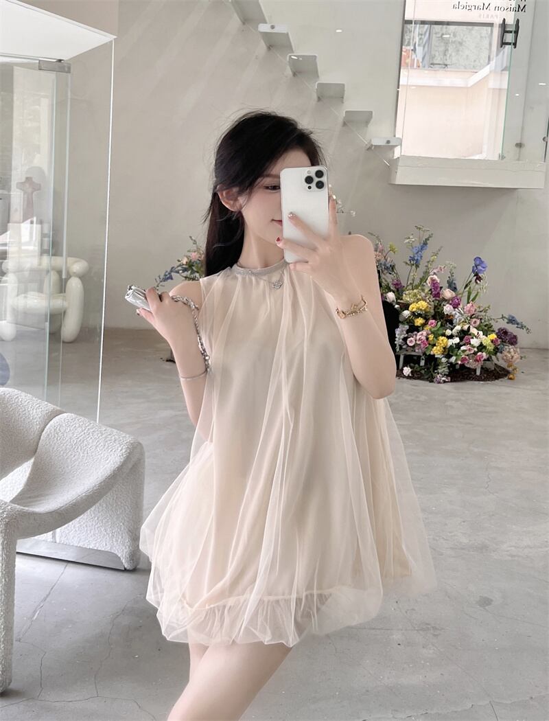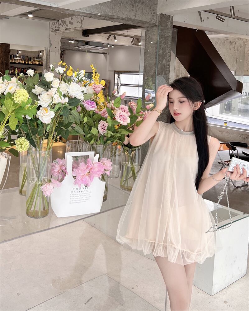 甘いメッシュノースリーブフラワーバッドドレス夏の小さなデザインセンスニッチ気質薄い妖精ショートスカート 大人ガーリー スウィート キュート カジュアル サマー 夏物 フラワーデザイン bstraw44053493202 | beaute25