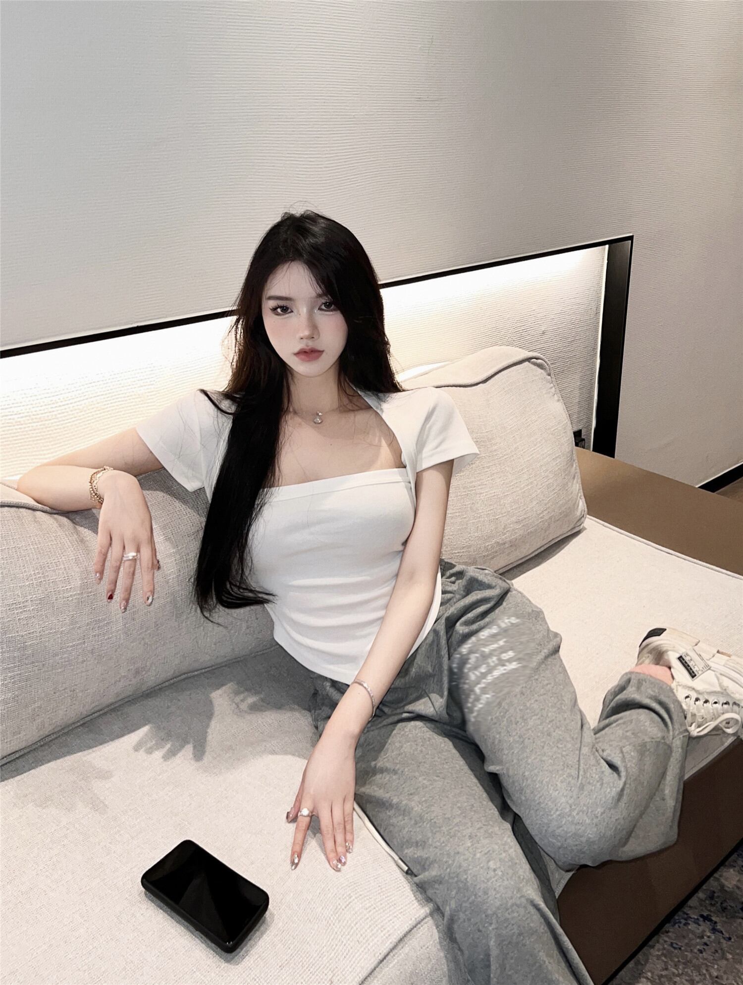 色:ホワイトトップ,ミルクティーカラートップ,グレーパンツ,ブラウンパンツ