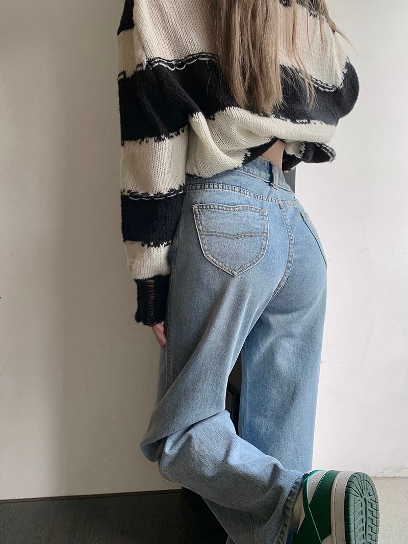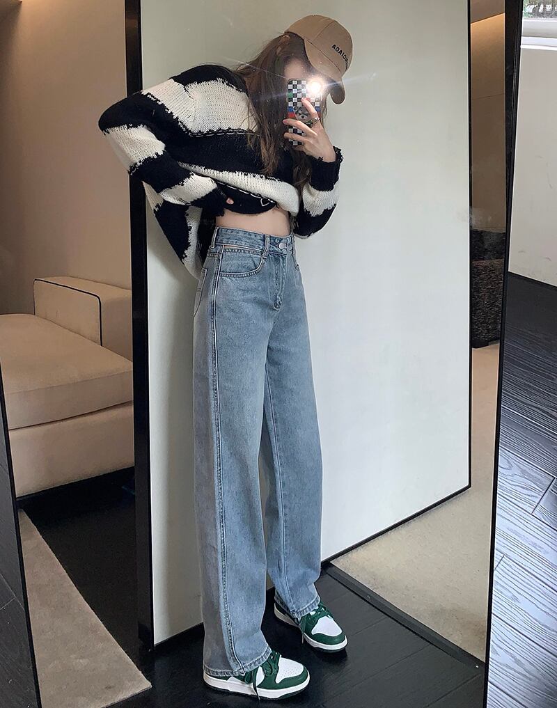 ウォッシュドニッチジーンズレディースハイウエストルーズストレートスリムパンツ2022年夏新作ワイドレッグモップパンツ ハイウェスト サマー 夏物 ワイドパンツ bstraw13770062849 | beaute25