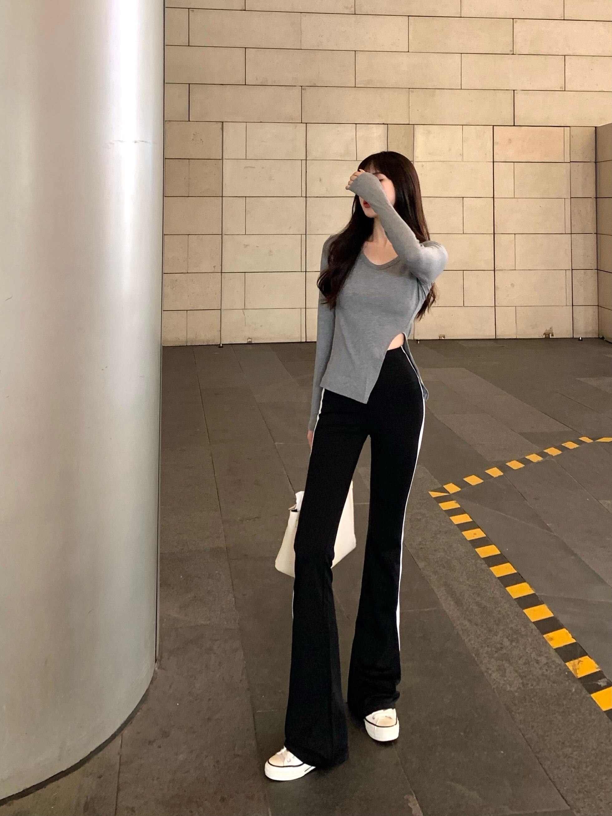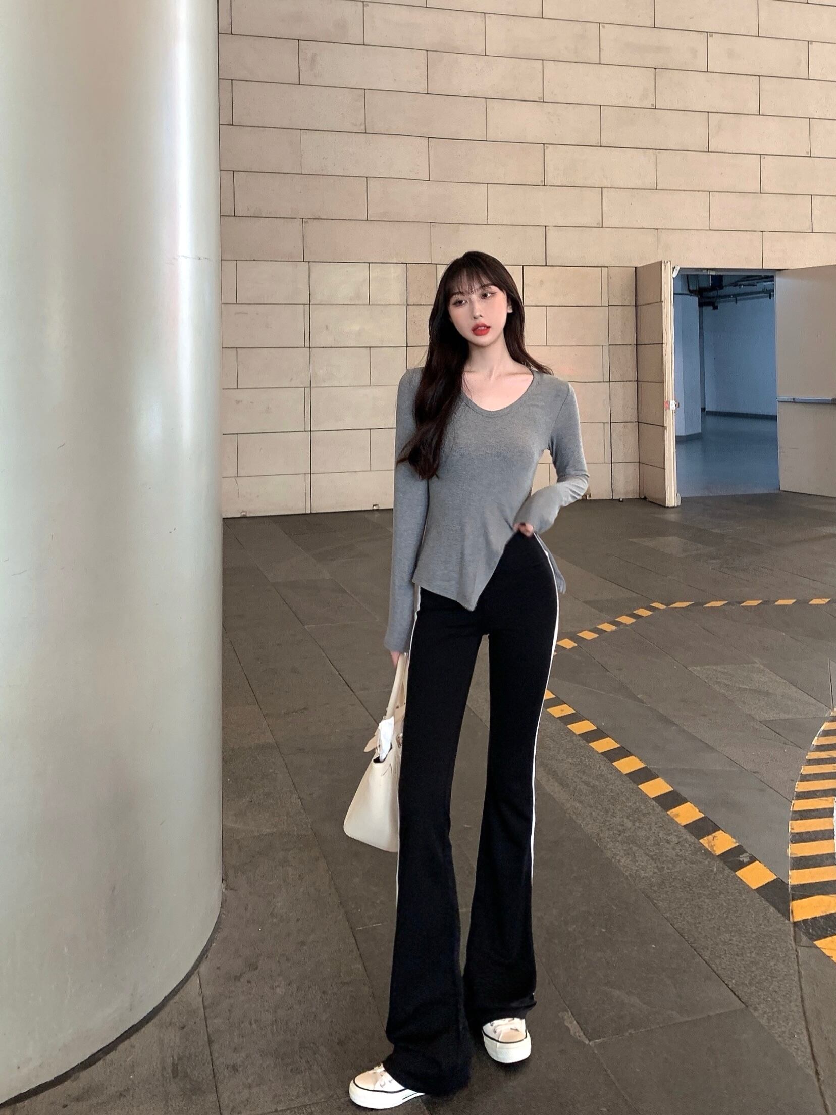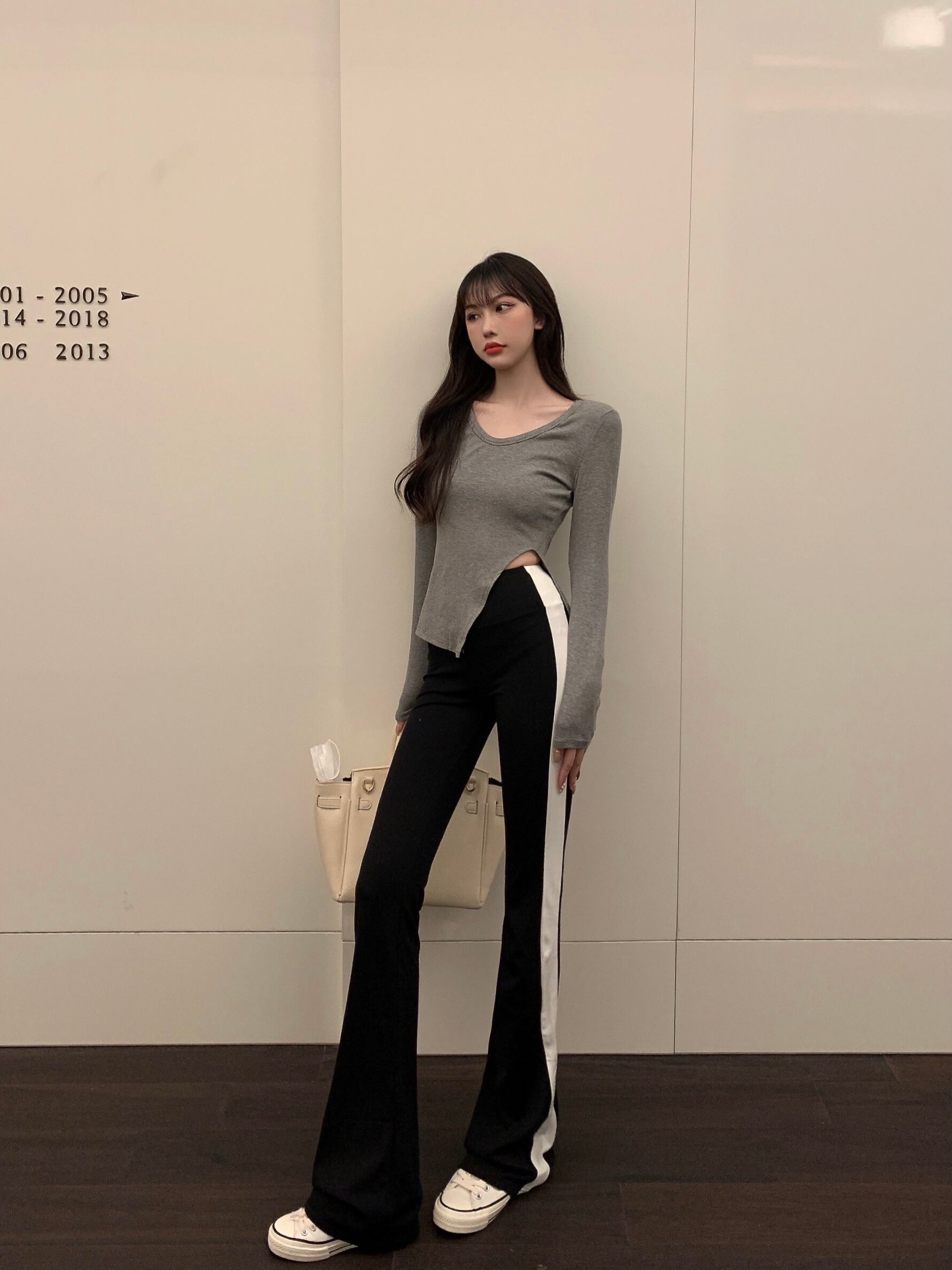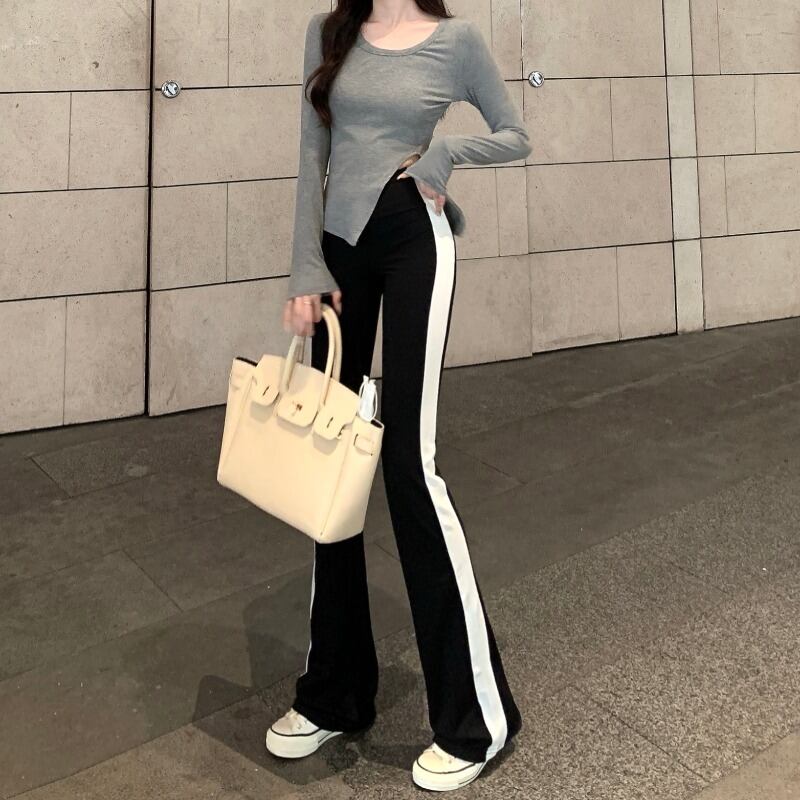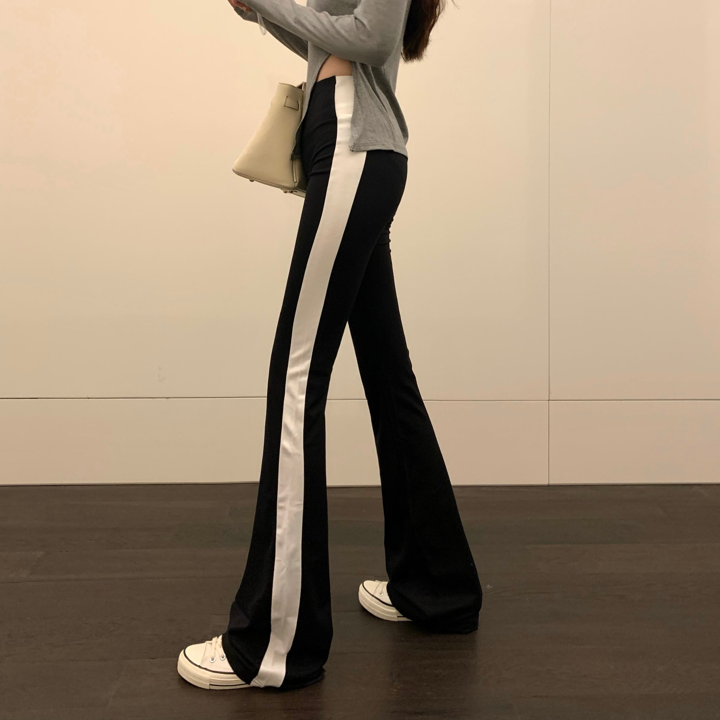 パンツレディースインスティッドハイウエストハイエラスティックコントラストカラーマイクロフレアワイドレッグパンツ2022年夏新作ブラックパンツ ハイウェスト 伸縮 サマー 夏物 bstraw31562851782 | beaute25