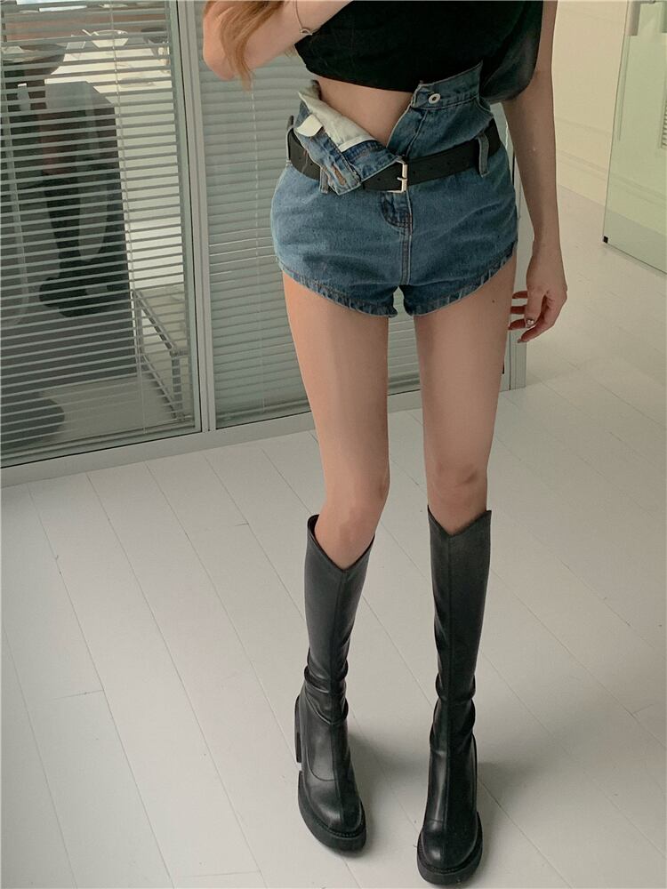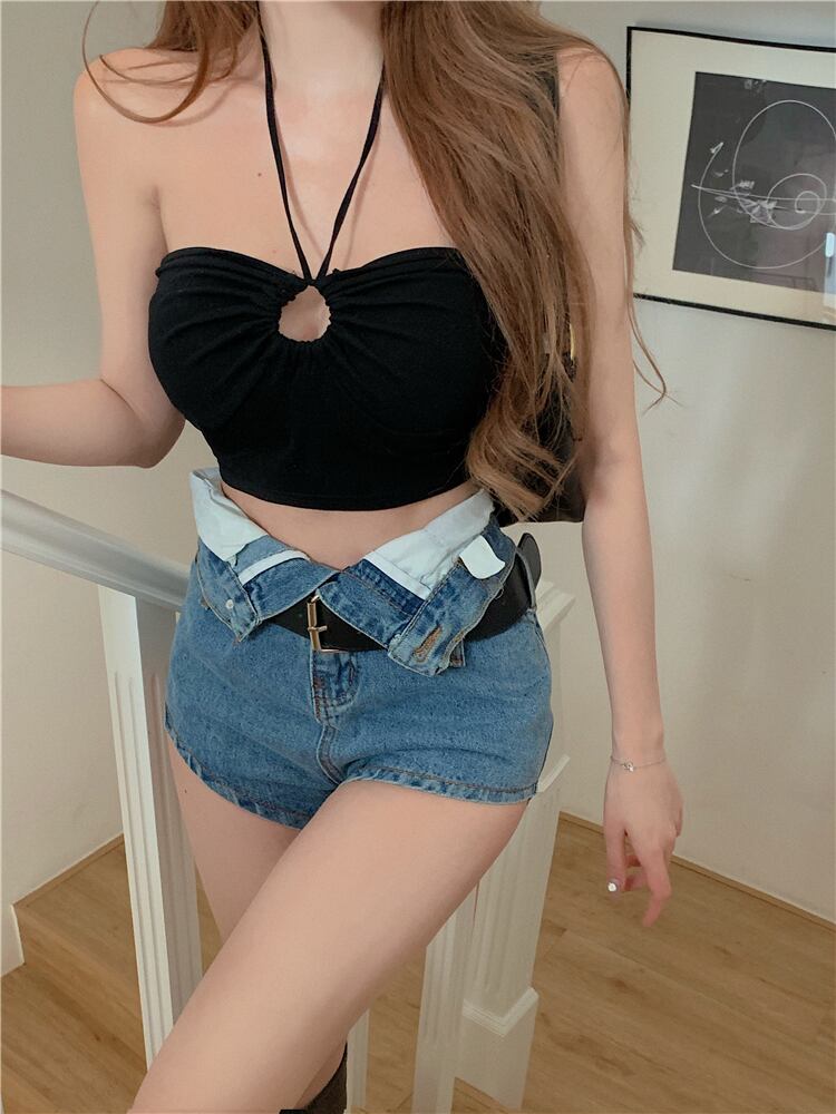ホットフランジャージーンズ女性のイントレンディなショーツ夏のデザインニッチハイウエストスリムストレートスリムパンツ ハイウェスト サマー 夏物 ブルマー bstraw45868065901 | beaute25