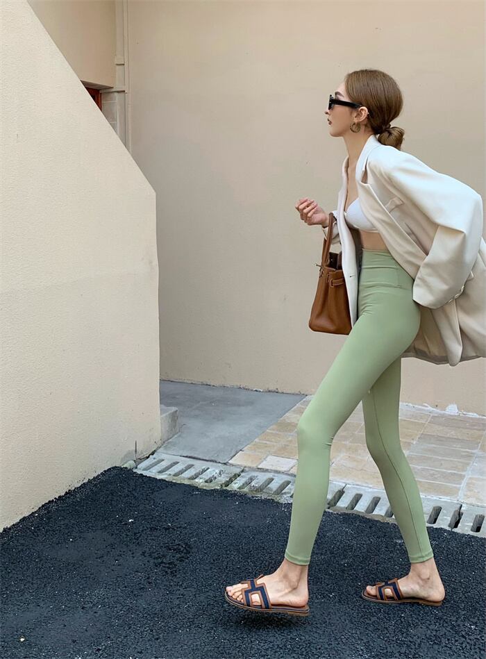 スポーツヨガパンツ女性の夏の薄いハイウエストのシームレスなアンチグレアバットリフティング弾性ボトミング安全パンツは屋外で着用することができます エラスティック 伸縮 サマー 夏物 bstraw8012536689 | beaute25