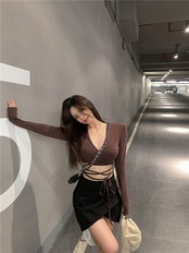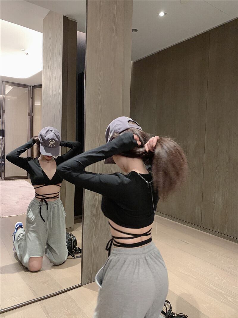 TシャツレディースショートストラップセクシータイトVネックピュアデザイアスタイル長袖ボトミングシャツトップ2022夏新作 ロング サマー 夏物 bstraw13035699042 | beaute25