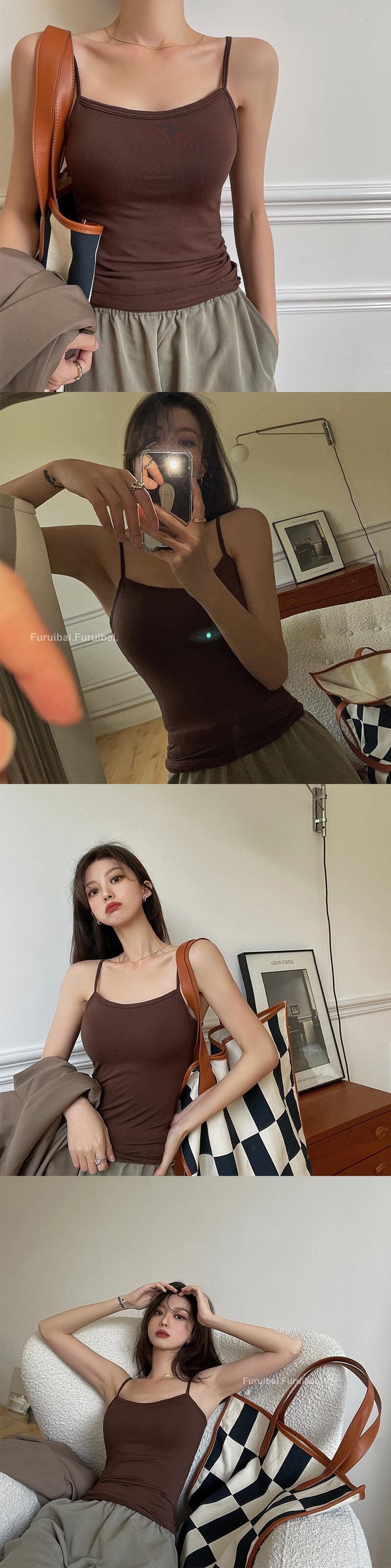 キャミソールベスト女性の夏の短い薄いセクション胸パッド付き純粋な欲望風黒アウターチューブトップ下着トップ ショート ブラック サマー 夏物 ピュア bstraw41824926329 | beaute25