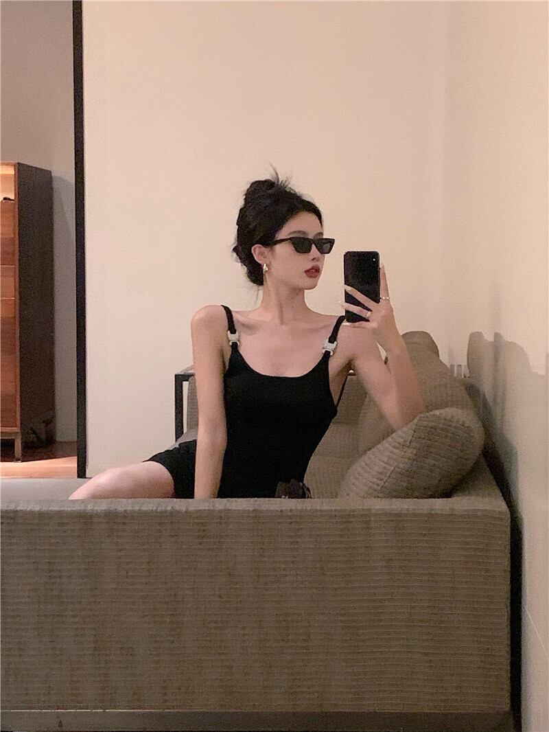 ホットセクシーなサスペンダードレス女性の夏の純粋な欲望背中の開いたスリムフィットノースリーブウエスト痩身バッグヒップショートスカート サマー 夏物 ピュア bstraw6525552402 | beaute25