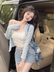 色:ホワイトサスペンダー,青いスリング,ブルーカーディガン,白いカーディガン,デニムスカート