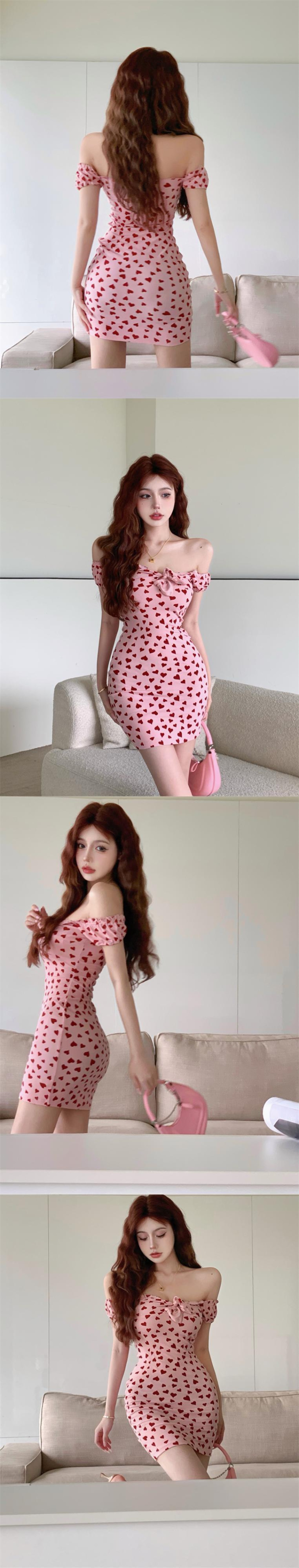 ピュア欲望ラブプリント半袖ワンピースレディースサマースウィートボウホルターウエストウエストスリムバッグヒップショートスカート リボン 大人ガーリー キュート カジュアル 夏物 bstraw34680414783 | beaute25