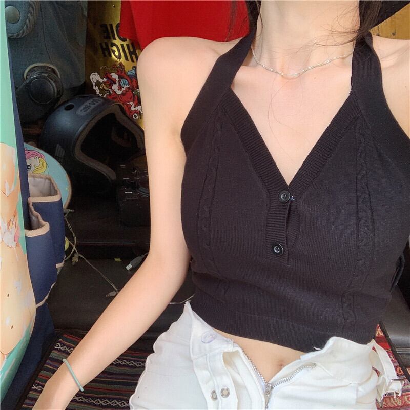 レトロなニットホルターネック小さなキャミソール女性の夏のアウターウェア純粋な欲望風甘いラップチェストピンクのインナートップ 大人ガーリー スウィート キュート カジュアル サマー 夏物 ピュア bstraw67509818543 | beaute25