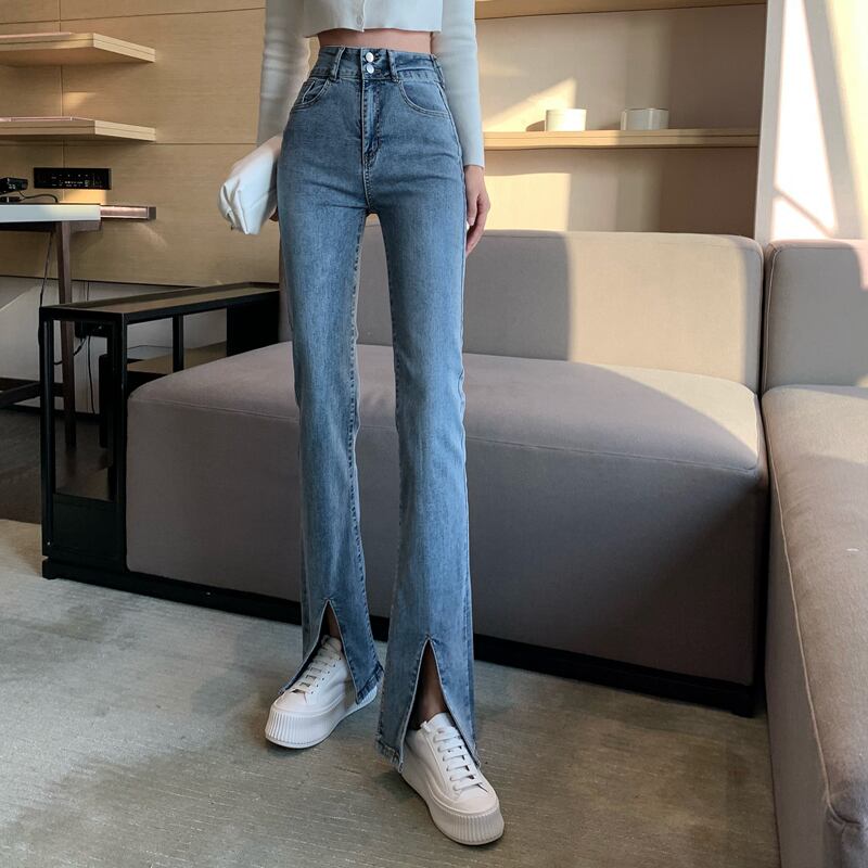 ジーンズスプリットスリムストレッチマイクロラウエストストレートシンロングパンツレディースサマーレトロフレアワイドレッグパンツ レッド 夏物 ワイドパンツ bstraw79281384016 | beaute25