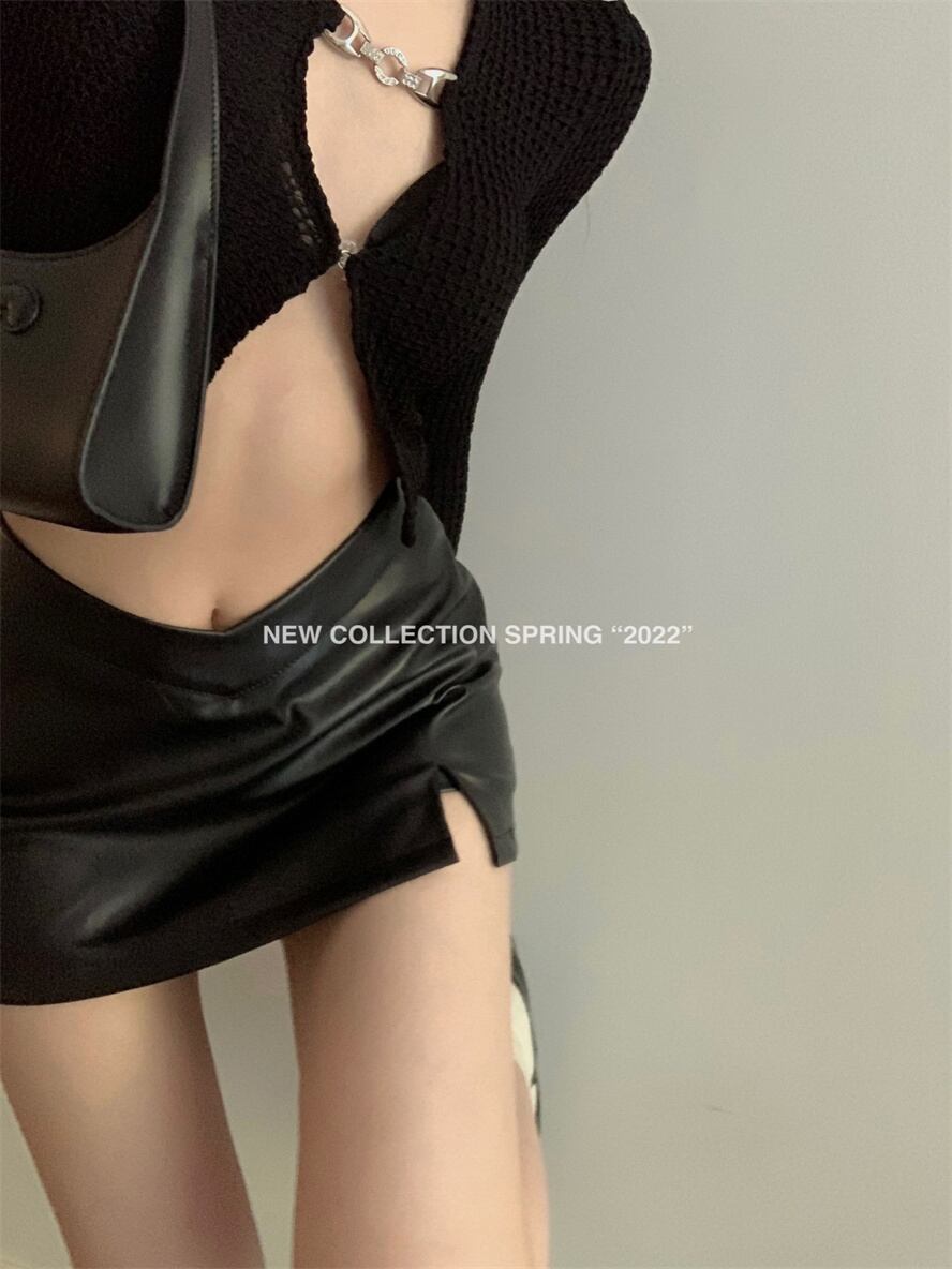 色:コート,レザースカート