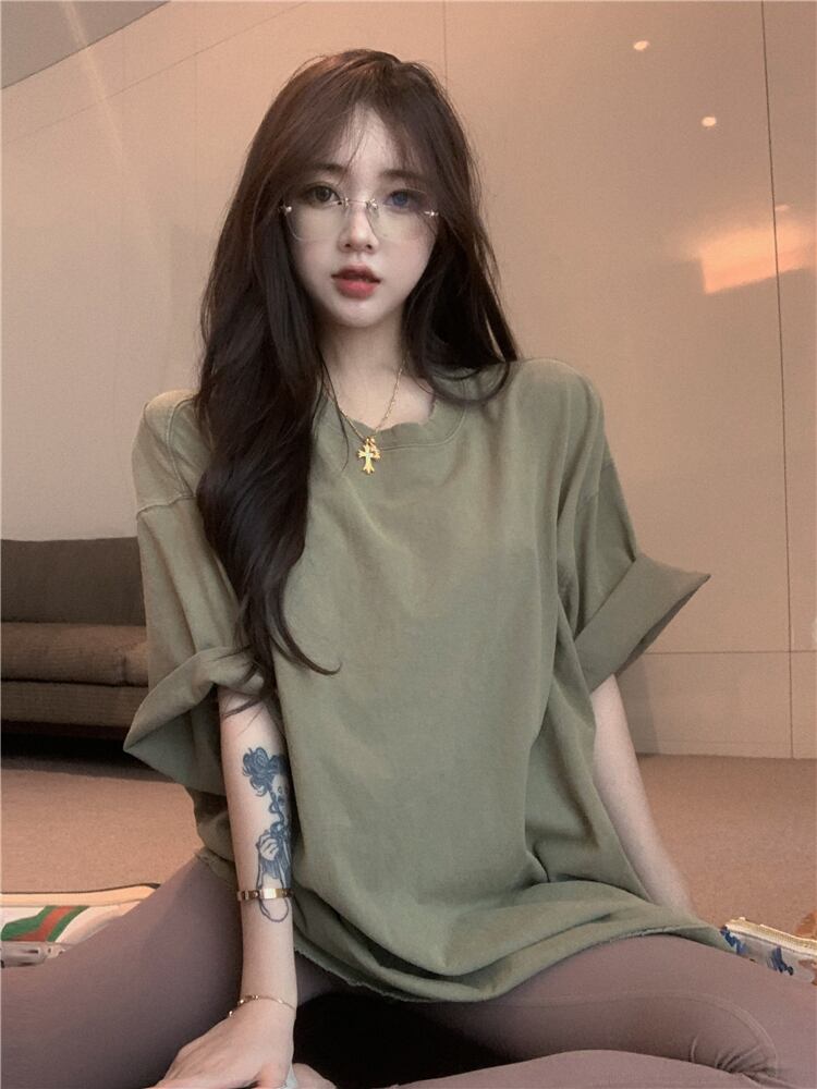 色:アーミーグリーンTシャツ,コーヒーカラーのヨガパンツ