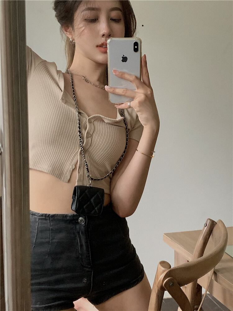 ヨーロッパとアメリカのinsニットTシャツ女性の夏の薄いカーディガンショートハイウエストへそタイトなセクシーな半袖トップ サマー 夏物 ヨーロピアン bstraw1695725536 | beaute25