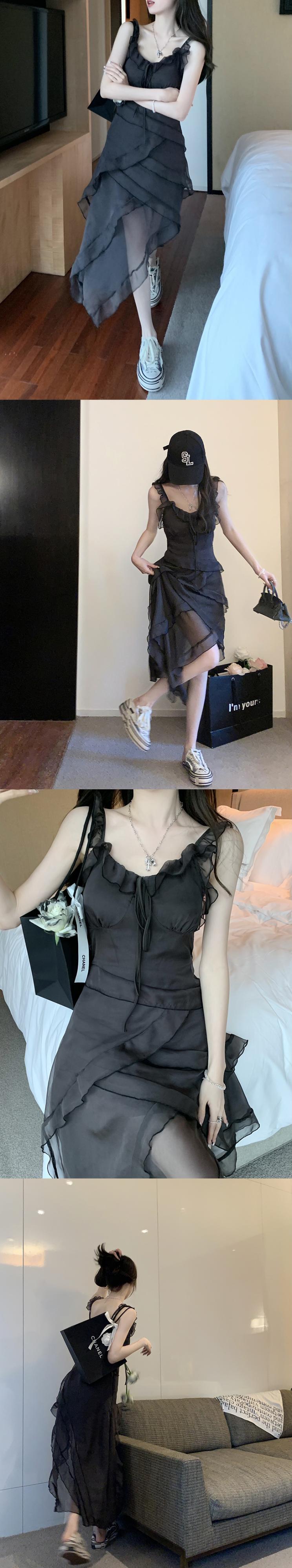 フレンチサスペンダードレスレディースサマーデザインセンスニッチロータスリーフスウィートセクシースプリットミドル丈スカート 大人ガーリー キュート カジュアル 夏物 bstraw97413406860 | beaute25