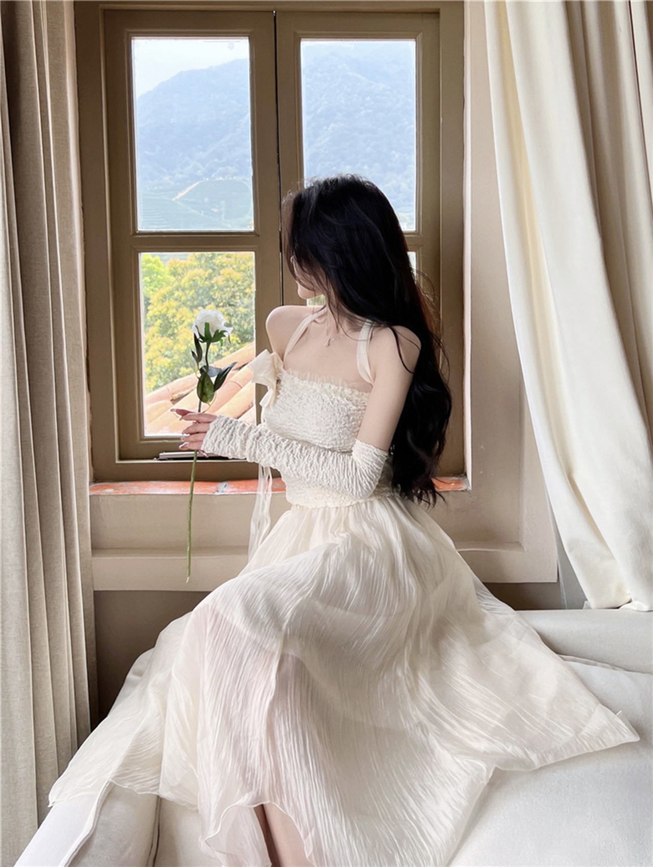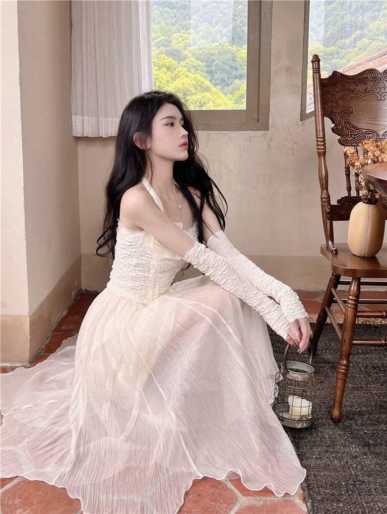白いプリーツキャミソールベスト女性の夏の短いホルターネックトップアウターウェアタイトで薄いインナーボトミングシャツ ショート ホワイト サマー 夏物 bstraw32760476650 | beaute25