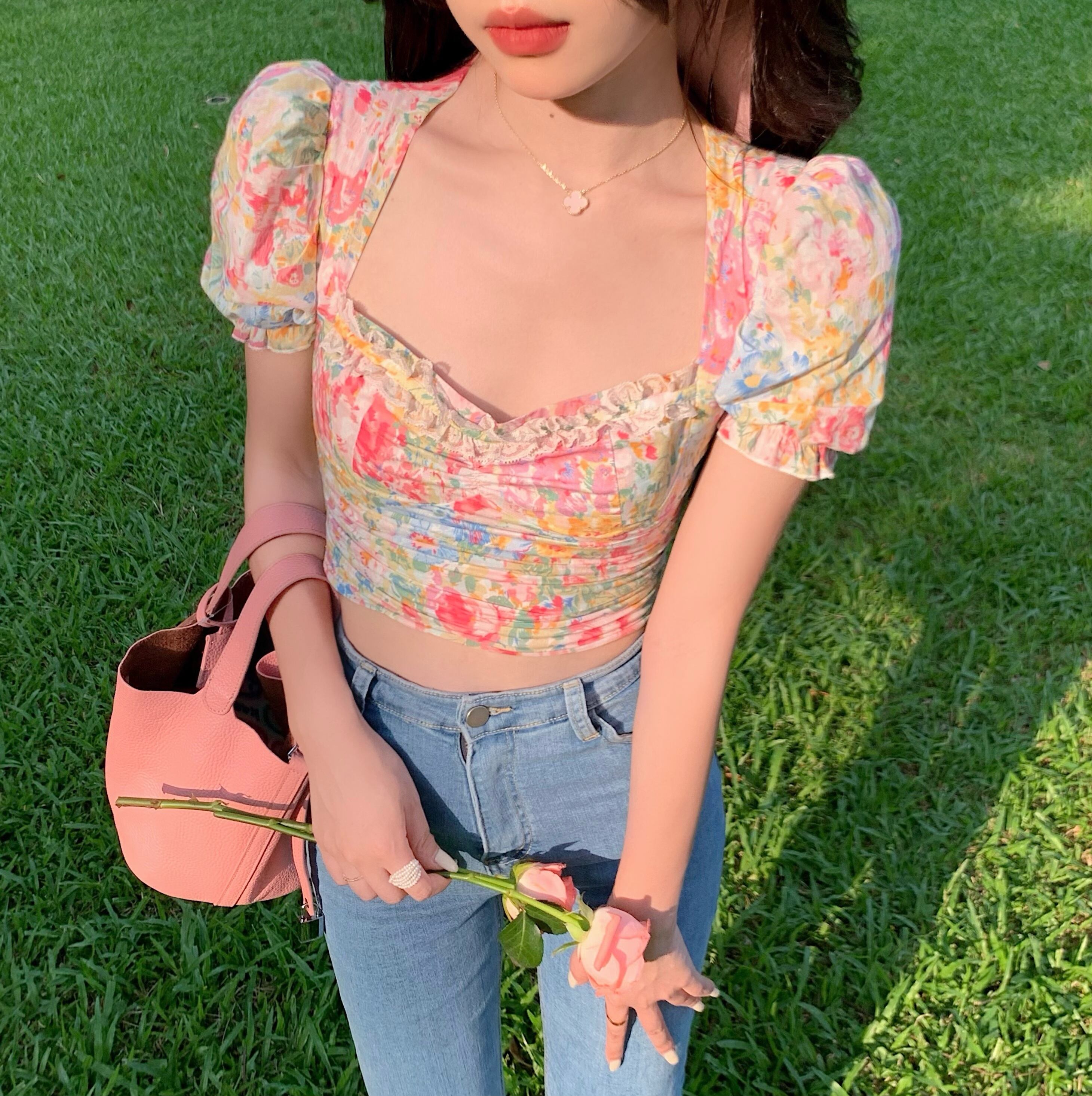 フレンチパフスリーブシャツレディースセンセーションニッチピュアデザイア半袖プリントホットガールズシャツサマーショートトップス ハーフスリーブ 夏物 bstraw6757806040 | beaute25