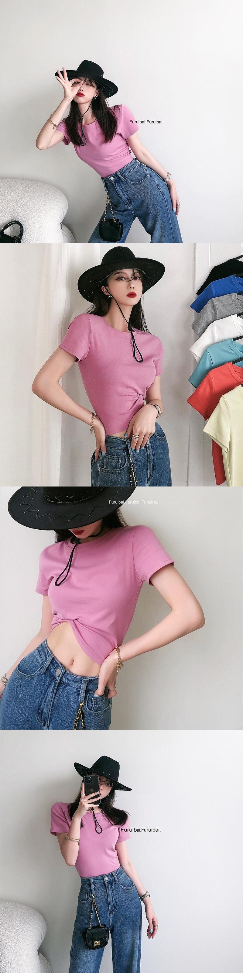 ベーシックなTシャツの女性のインスティッド夏2022年新しい白いハイウエストのスリムフィットクロップドへそ半袖ショートトップ ホワイト サマー 夏物 bstraw35759865227 | beaute25