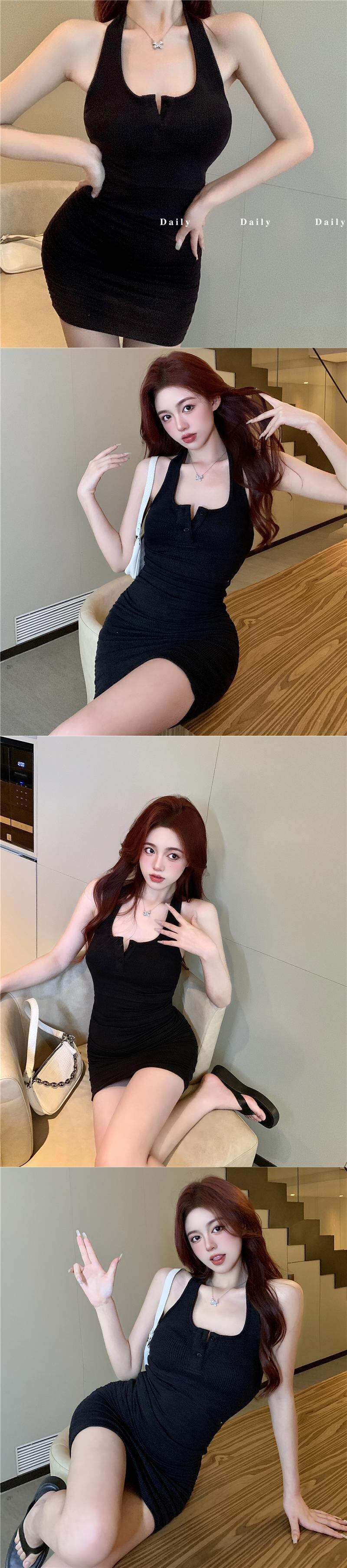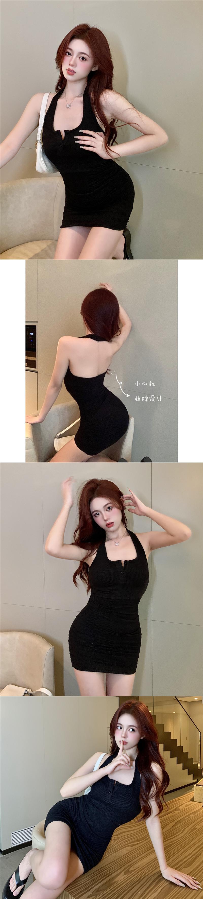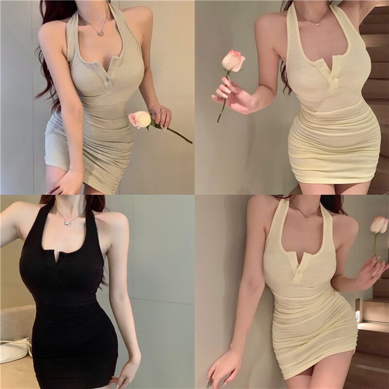 純粋な欲望風バックレスセクシーなサスペンダードレス女性の夏のホルターネックノースリーブスクエアカラースリムボトミングバッグヒップショートスカート サマー 夏物 スクウェア bstraw70035613065 | beaute25
