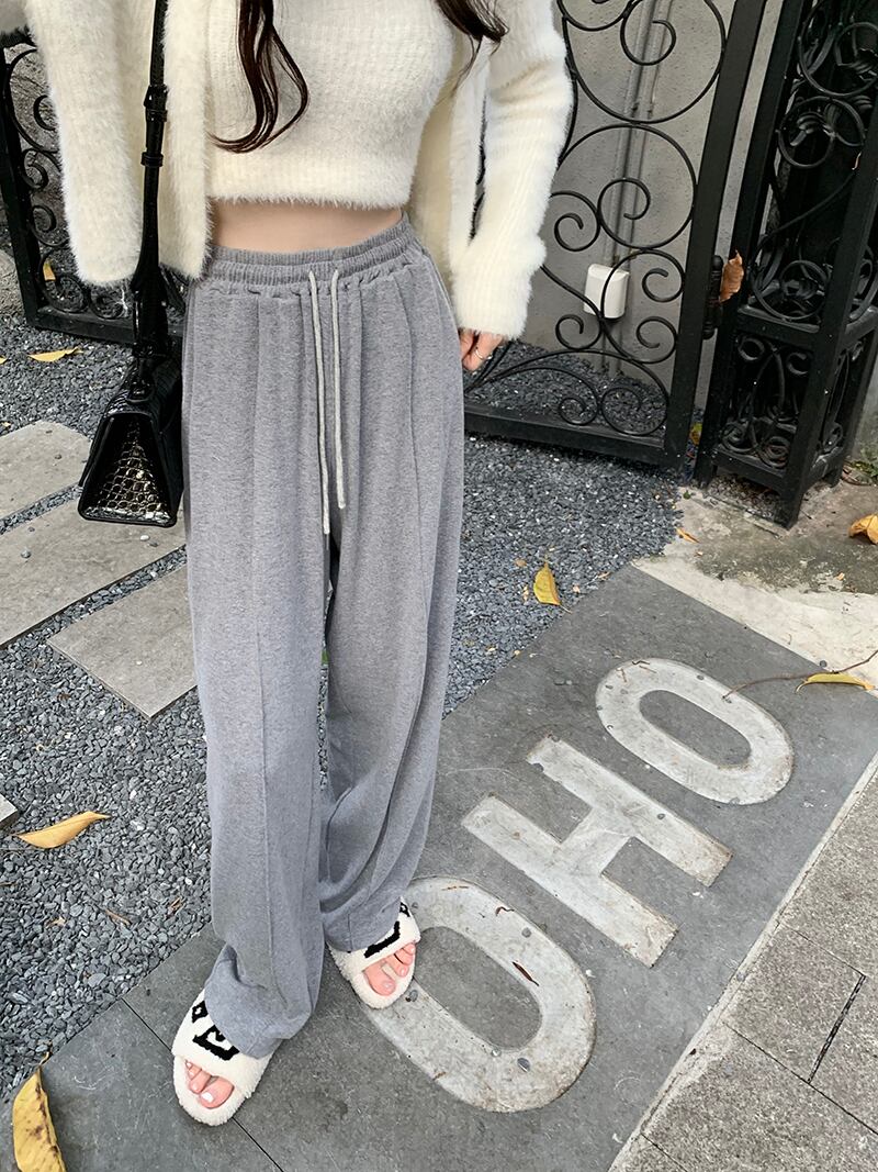 伸縮性ウエストカジュアルスポーツスウェットパンツ女子2022年夏新作パンツハイウエストルーズストレートワイドレッグパンツ ハイウェスト エラスティック サマー 夏物 ワイドパンツ bstraw81992340702 | beaute25
