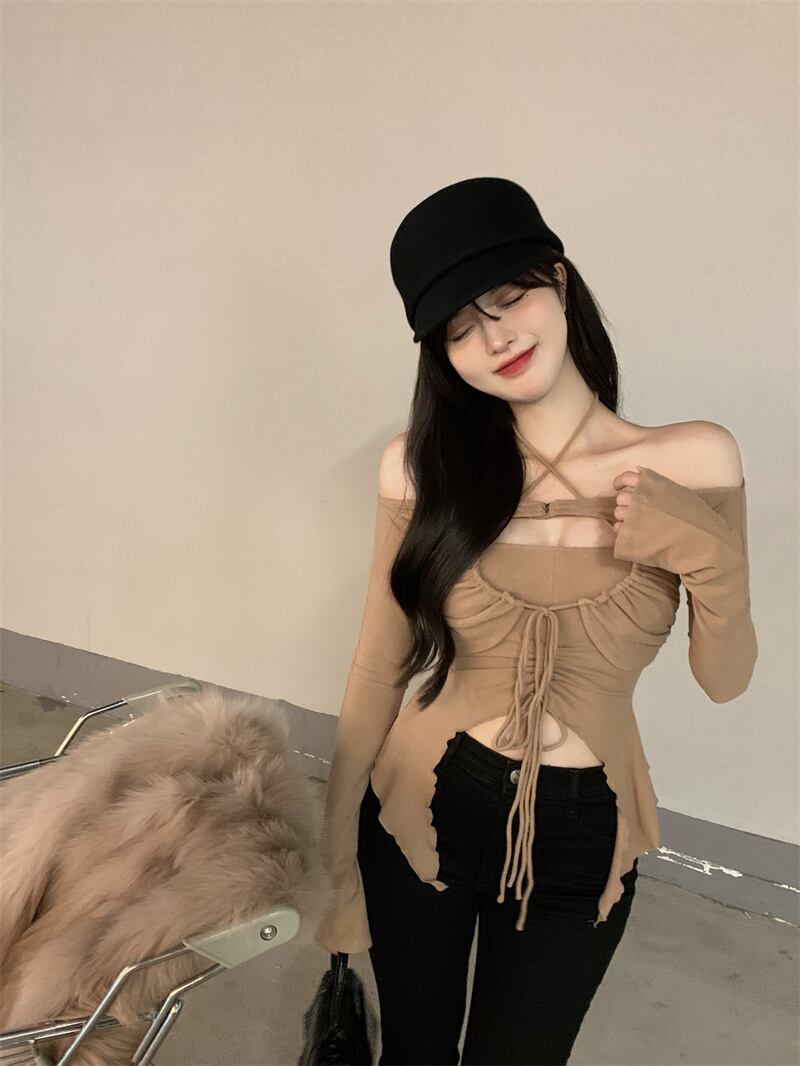 ワンショルダーブラウスTシャツ女性の夏の純粋な欲望注意深いマシンオフショルダー長袖半袖ボトムシャツトップ ショート ロング サマー 夏物 ピュア bstraw17569211608 | beaute25
