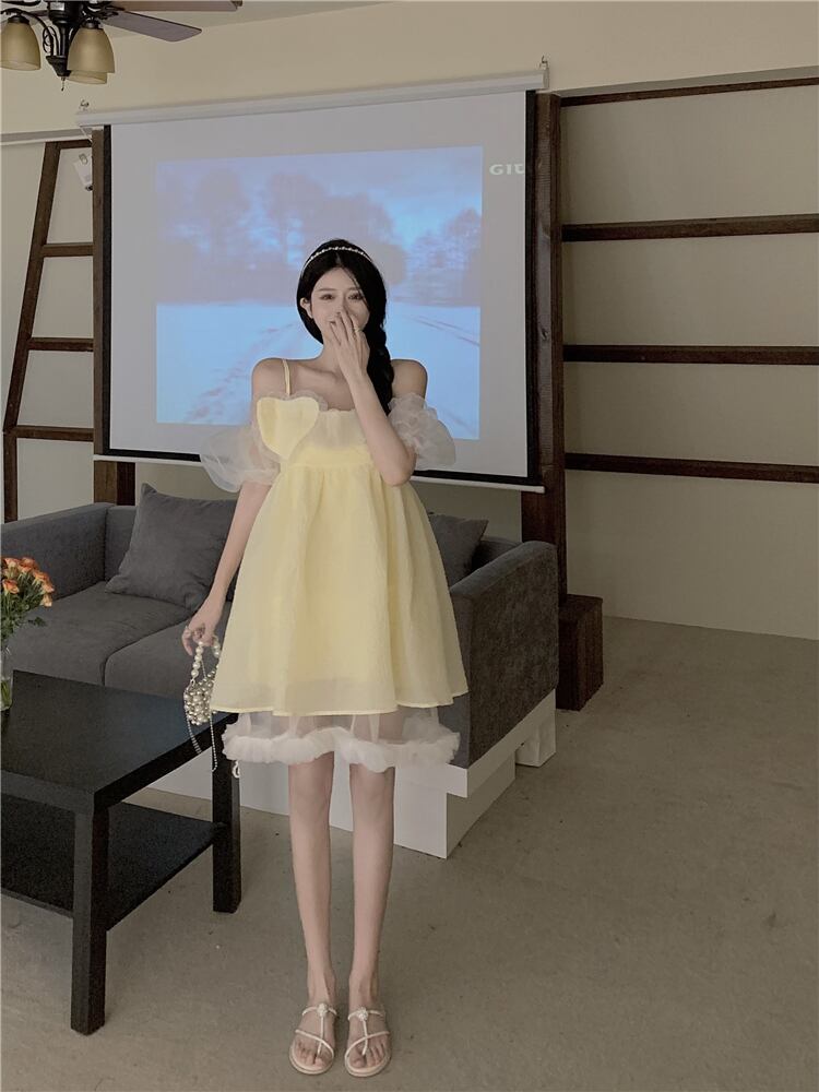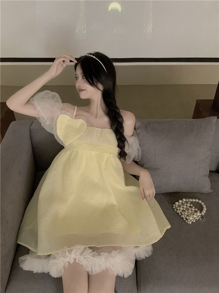 フレンチメッシュ半袖サスペンダーワンピースレディースサマースウィート気質スリミングデザインスモールフワフワショートスカート 大人ガーリー キュート カジュアル ふわふわ 夏物 bstraw55212766982 | beaute25