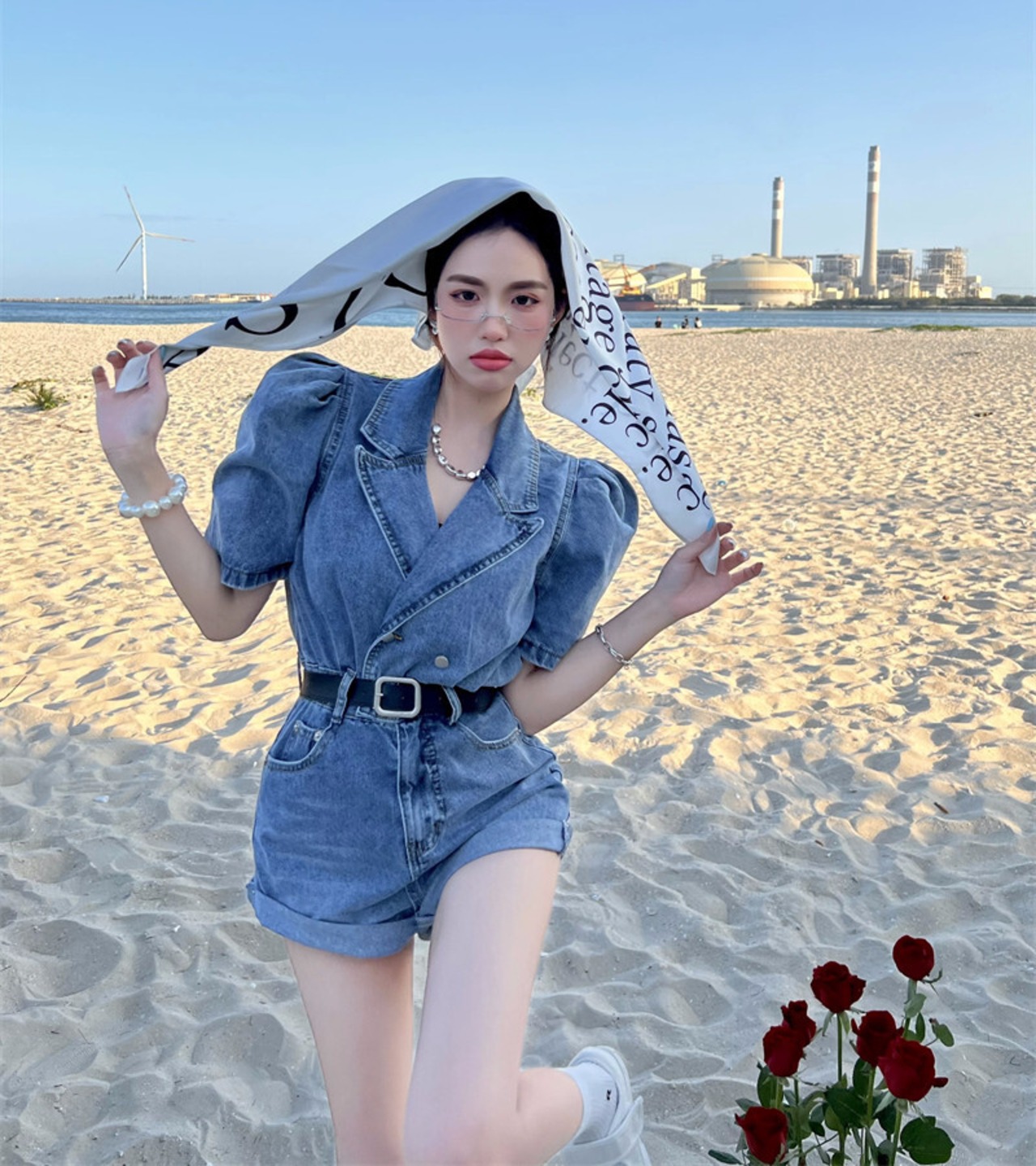 ホットツーリングカーリングワンピースデニムショーツレディース薄片サマースモールオールマッチハイウエストストラップワイドレッグパンツ 夏物 ブルマー bstraw3426607846 | beaute25
