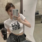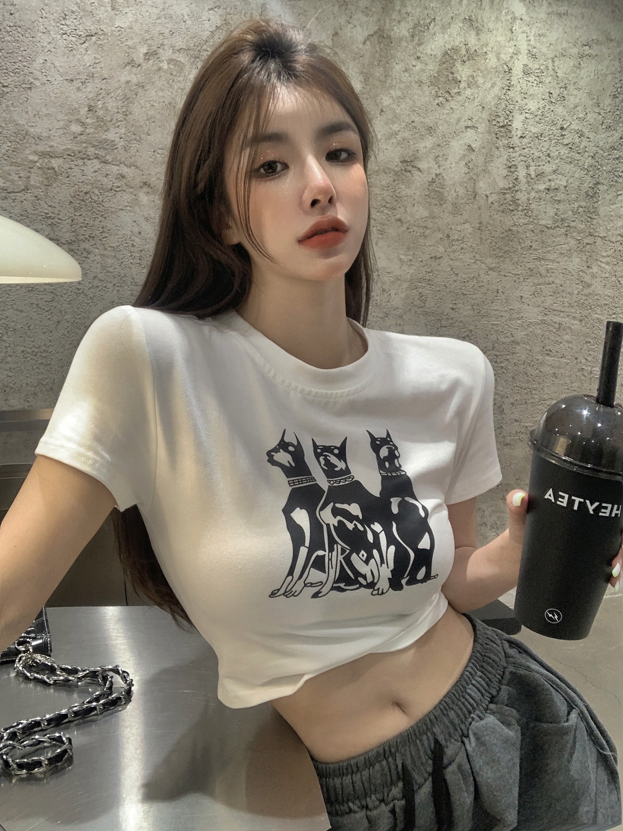 ヨーロッパとアメリカのTシャツ女性の潮流2022年夏新しい白い印刷スリムフィットと薄い半袖ボトミングシャツトップ ホワイト サマー 夏物 ヨーロピアン bstraw28965357646 | beaute25