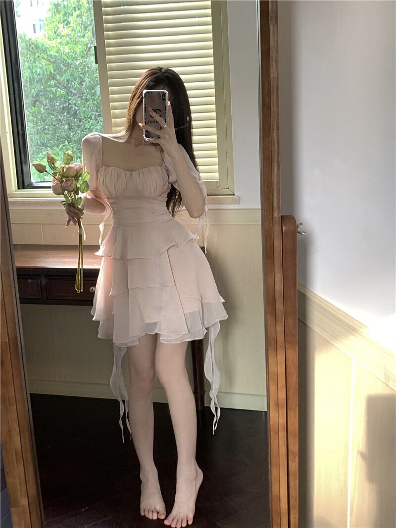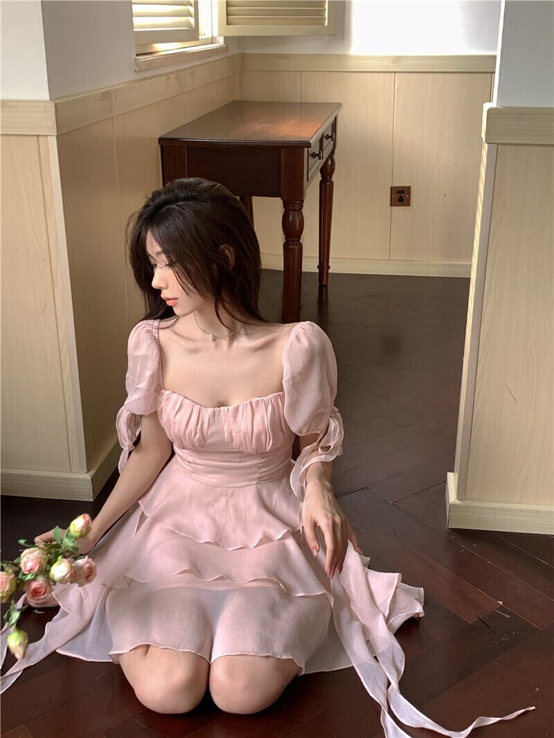 ピュアデザイアフリルパフスリーブドレスレディースサマースモールスウィートスパイスガールスクエアネックケーキショートスカート 大人ガーリー キュート カジュアル 夏物 スクウェア bstraw20991368130 | beaute25