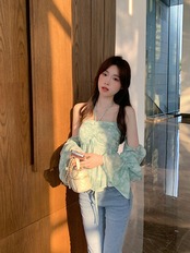 甘いホルターネックワンショルダーフローラルシフォンシャツレディースサマーフレンチショート長袖デザインニッチトップ ロング 大人ガーリー スウィート キュート カジュアル 夏物 花柄 bstraw13419065367 | beaute25