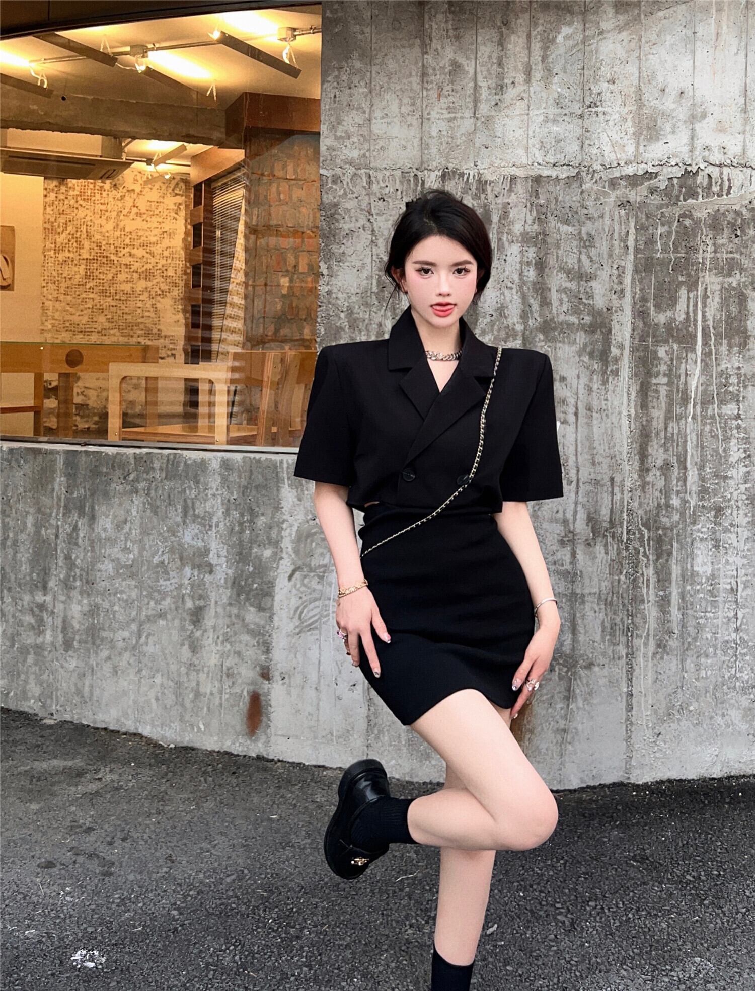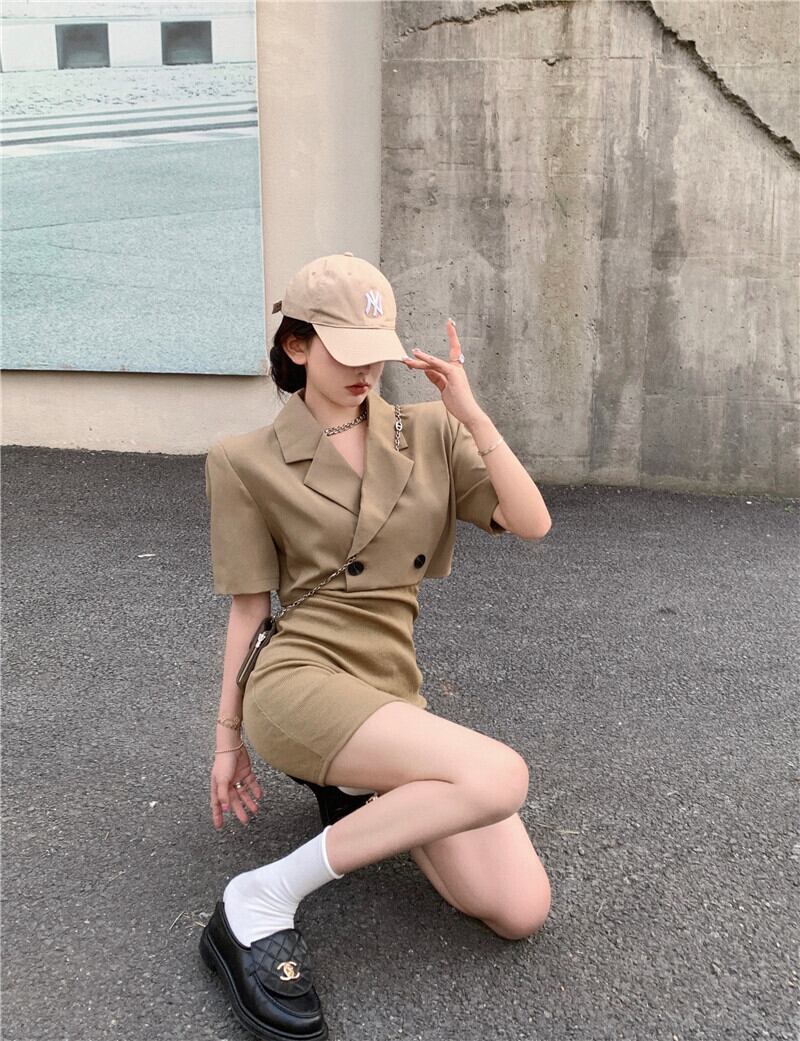 甘くて気性のある半袖スーツドレス女性2022年夏の新しい純粋な欲望は薄いウエストバッグヒップショートスカートを見せたい 大人ガーリー スウィート キュート カジュアル サマー 夏物 ピュア bstraw77435692877 | beaute25