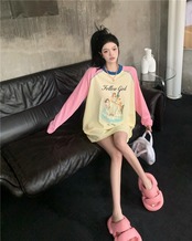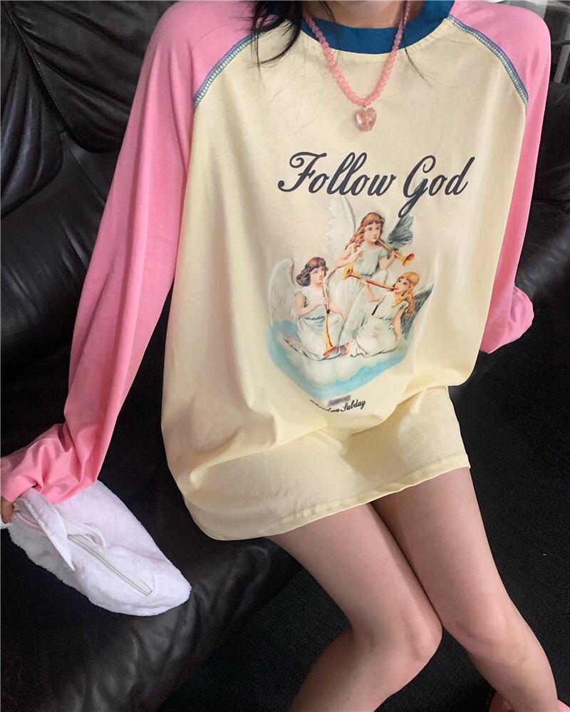 バージョンTシャツレディースサマーミッドレングスレイジースタイルイントレンディな漫画プリントデザインセンスニッチルーズ長袖トップ ロング 夏物 bstraw76353280001 | beaute25