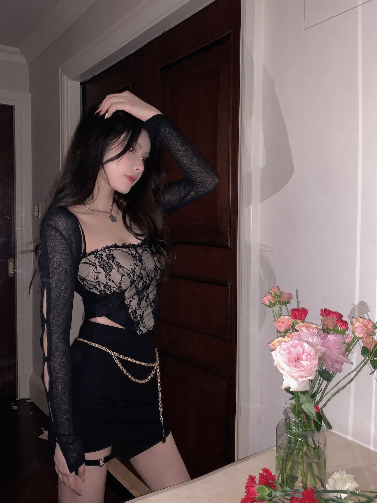 ブラックレースキャミソールレディースサマースウィートイレギュラータイトフィット薄手のショートセクショントップスとアウターウェア 大人ガーリー キュート カジュアル 夏物 bstraw2420173192 | beaute25