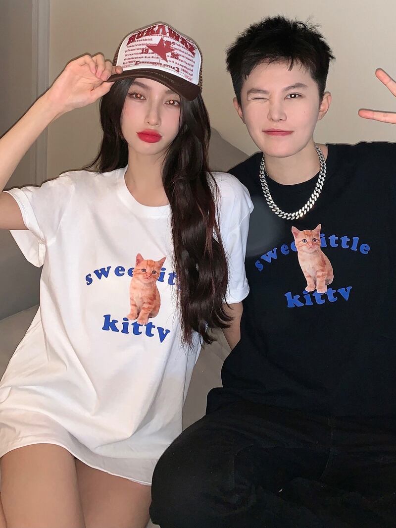 猫柄Tシャツ女性インスティッド夏2022年新作ホワイトスウィートショルダースリムスリム半袖トップス 大人ガーリー キュート カジュアル サマー 夏物 bstraw47197529108 | beaute25