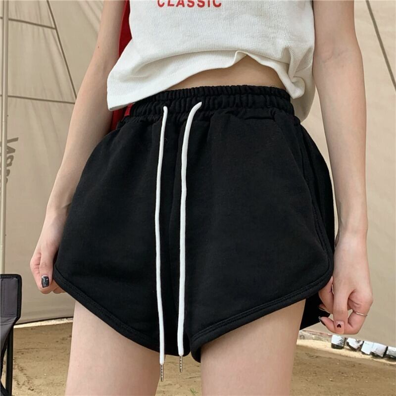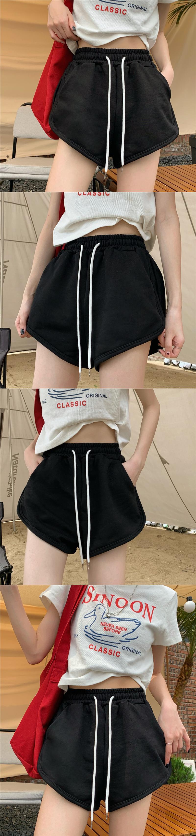レッドドローストリングストレートショーツレディースサマースモールルーズホームウエストシンスポーツワイドレッグパンツ 夏物 ブルマー ワイドパンツ bstraw65276469386 | beaute25