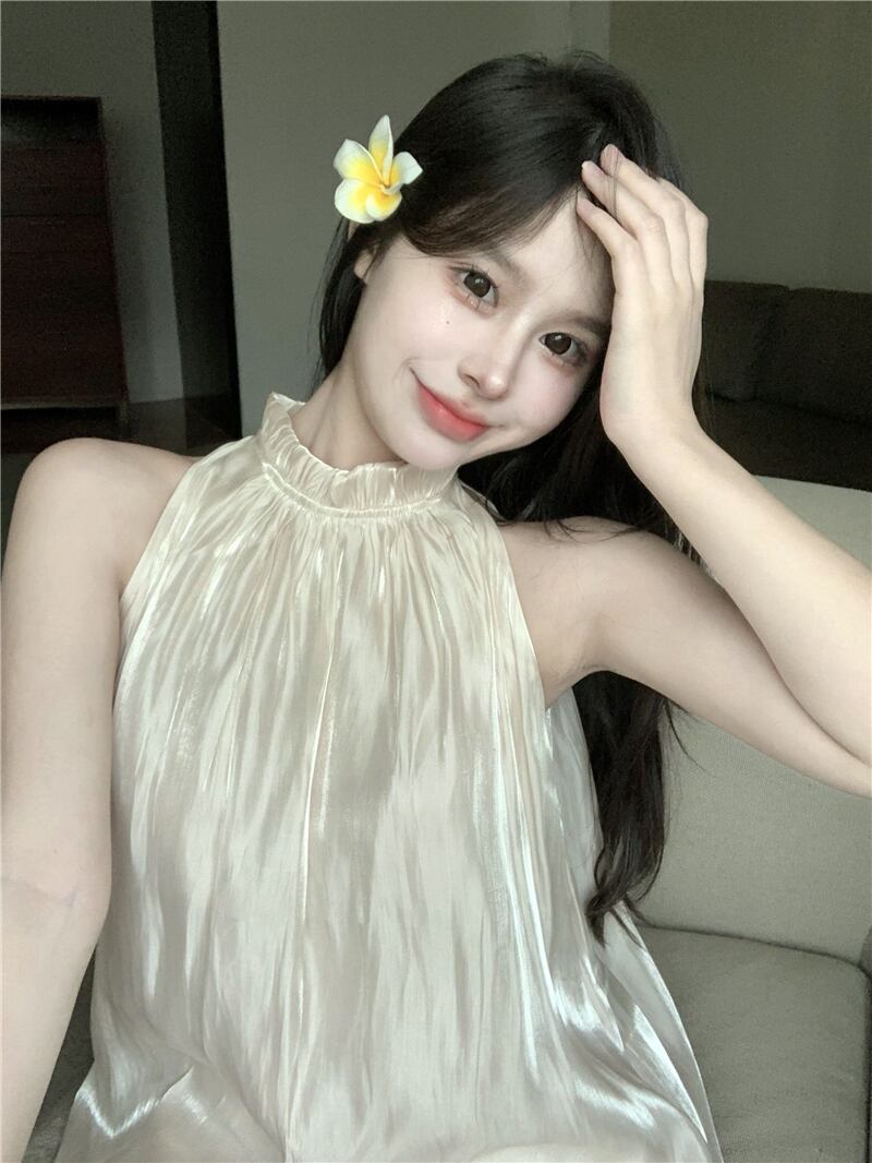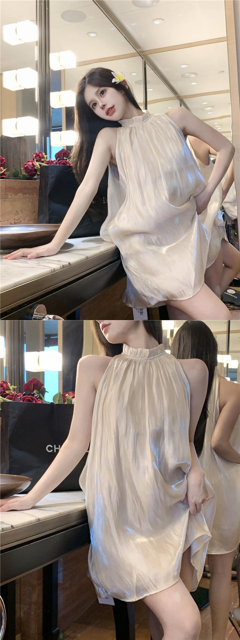 純粋な欲望のハイエンドホルタードレス女性の夏フランスの甘い女の子は気質のないノースリーブのaラインの短いスカートを緩めます ショート 大人ガーリー スウィート キュート カジュアル サマー 夏物 bstraw18154450685 | beaute25