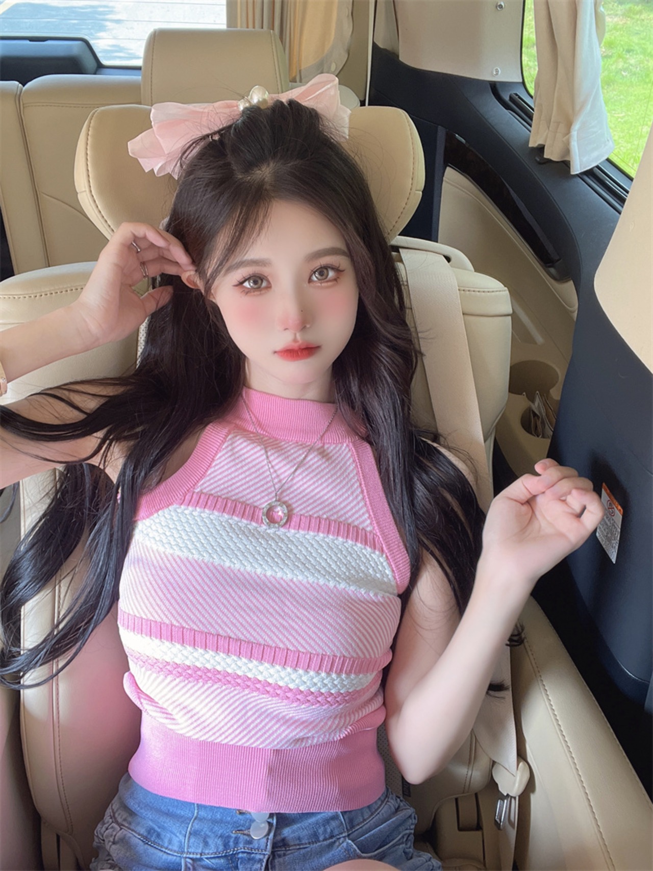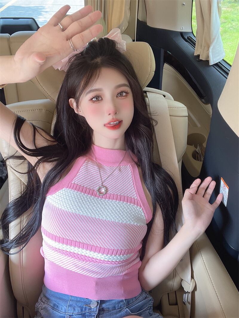 純粋な欲望ウィンドストライプニットキャミソール女性の夏の新しい甘いオフショルダータイトフィットトップスとアウターウェア 大人ガーリー スウィート キュート カジュアル サマー 夏物 bstraw70474651857 | beaute25