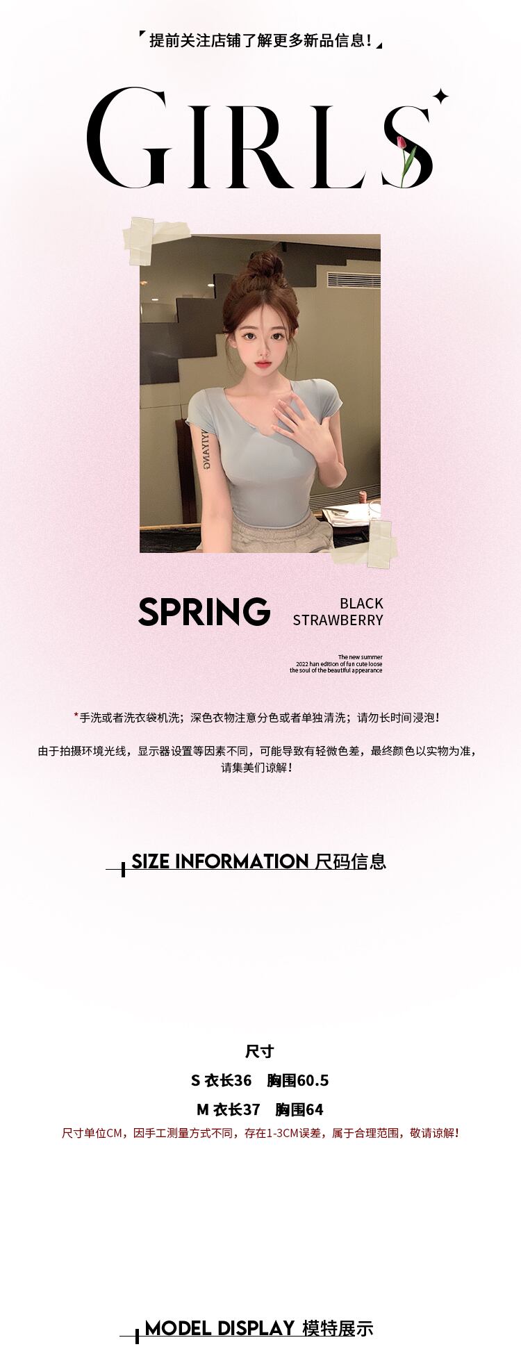 ピュアラストTシャツ女性インスティッドサマーミルクブルースウィートVネックセクシー薄身セクションタイトフィット薄手半袖トップス 大人ガーリー キュート カジュアル 夏物 bstraw86592226436 | beaute25