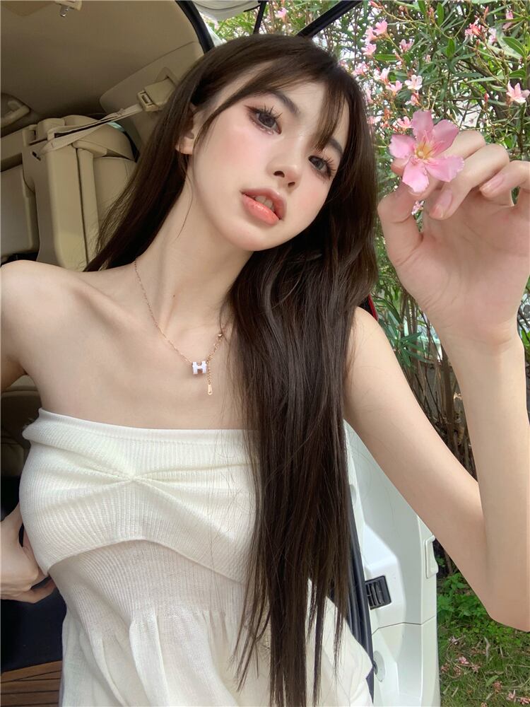 白いストラップレス下着チューブトップアウターウェア女性の夏の薄いセクション短いアンチグレアキャミソールベストインナートップ ショート ホワイト サマー 夏物 bstraw38477247026 | beaute25
