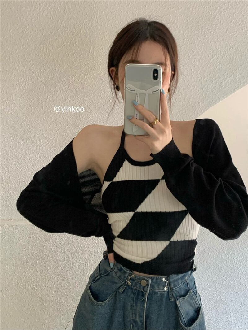 首に掛けたい純粋な欲望ニットキャミソールベスト女性夏スウィートスーツ日焼け止めブラウスカーディガントップツーピースセット 大人ガーリー キュート カジュアル サマー 夏物 bstraw17328018722 | beaute25