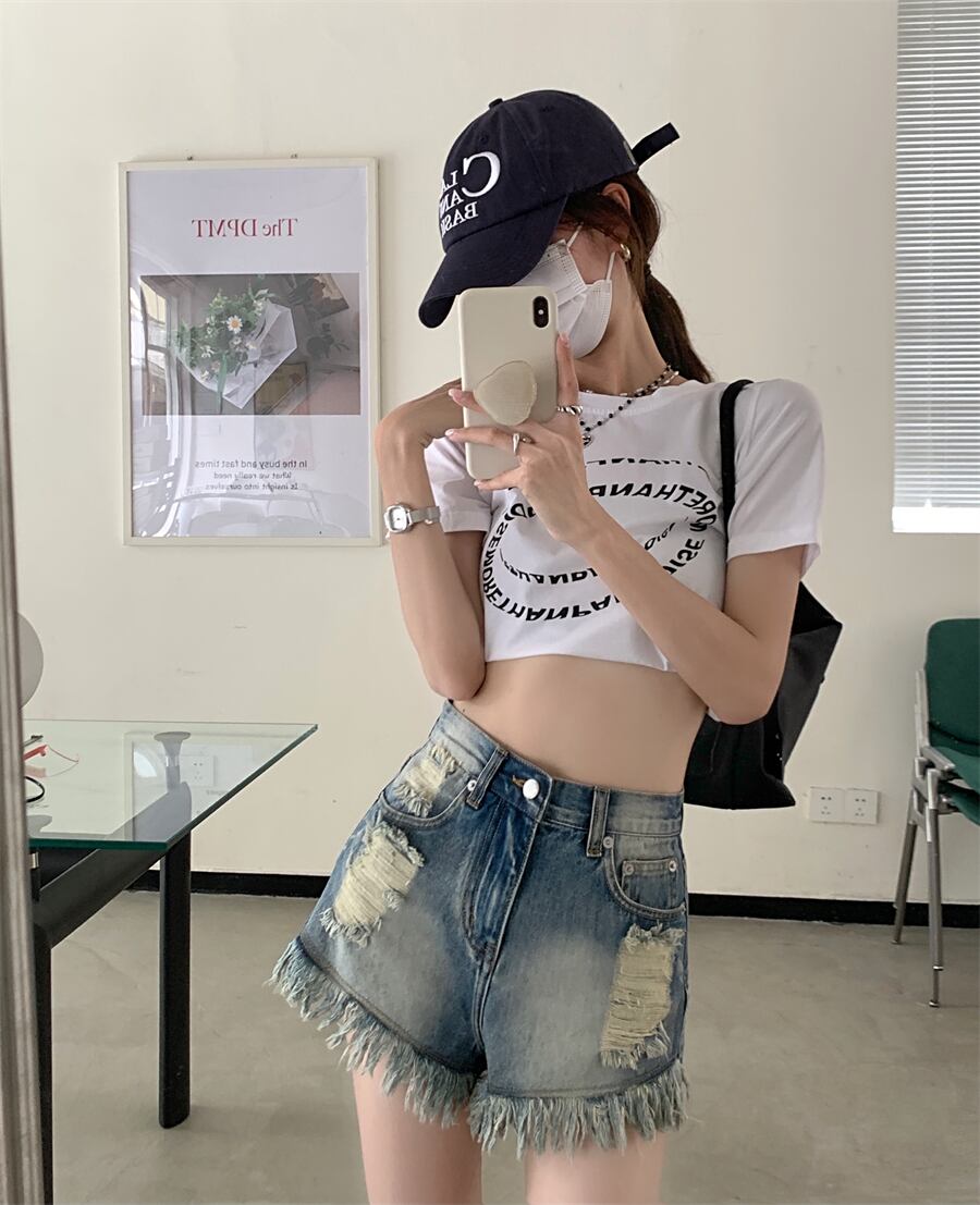昔ながらの生のエッジリッピングジーンズレディースレトロストレートショーツ夏ハイウエストルーズワイドレッグスリムパンツ ハイウェスト サマー 夏物 ブルマー ワイドパンツ bstraw47262020502 | beaute25