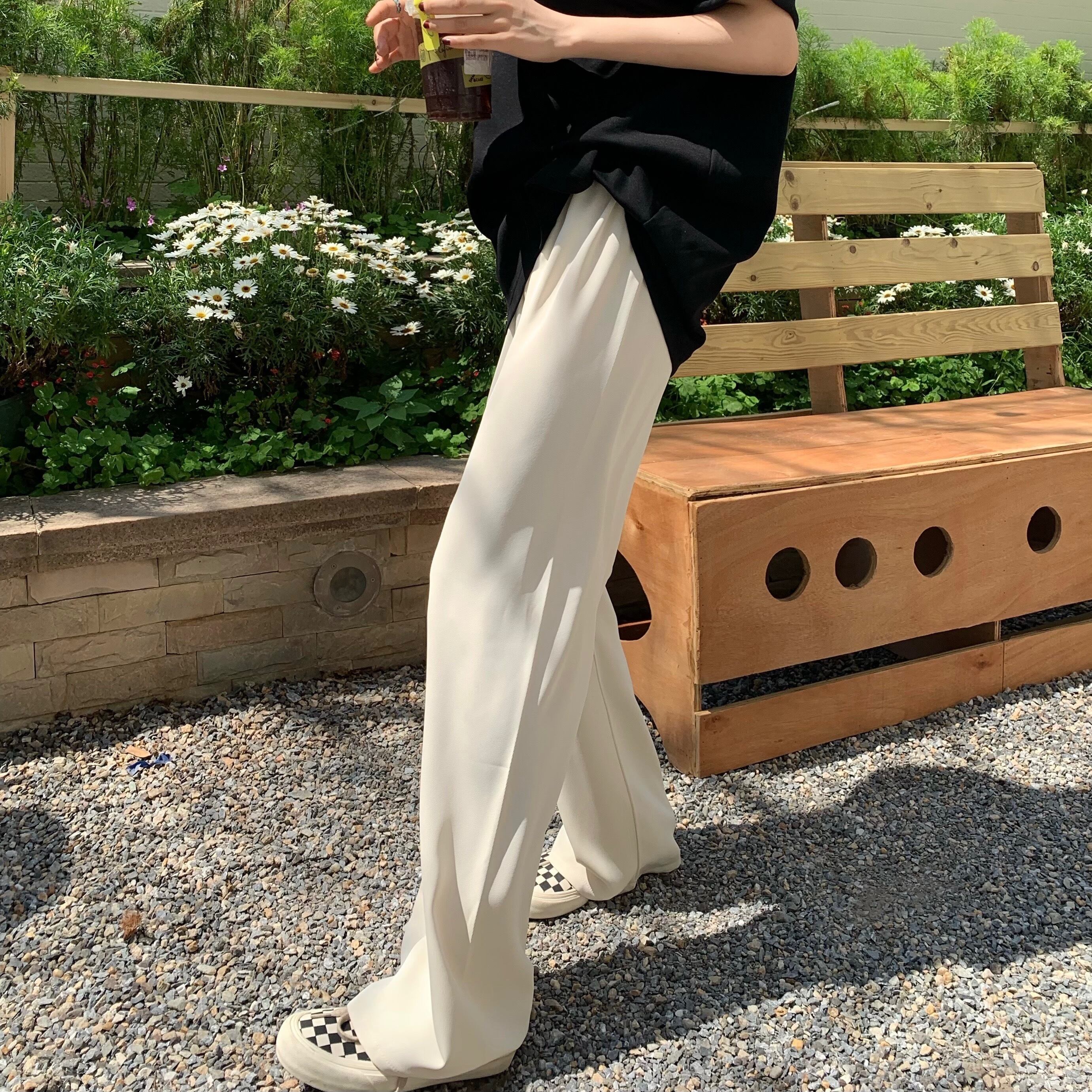 ウエストストレートカジュアルパンツレディースサマーシンセクションオールマッチイントレンディシンドレープワイドレッグパンツモップパンツ 夏物 ワイドパンツ bstraw64522466738 | beaute25