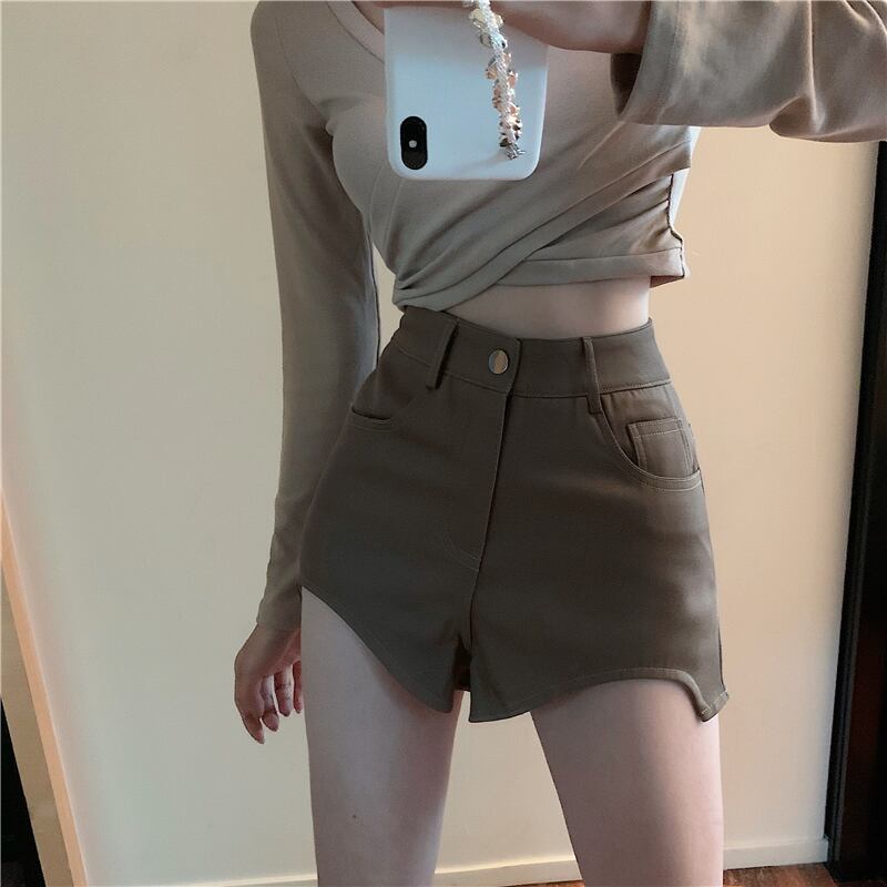 不規則なデザインのワイドレッグカジュアルパンツ女性の2022年夏の新しいショーツハイウエストルーズで薄いパンツ ハイウェスト サマー 夏物 ブルマー bstraw3819328551 | beaute25