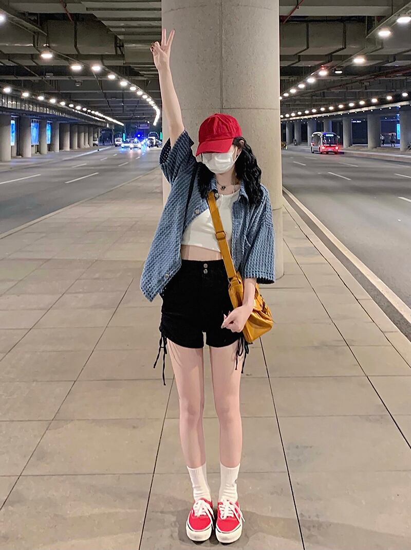 色:白いベスト,黒のショートパンツ,半袖ジャケット