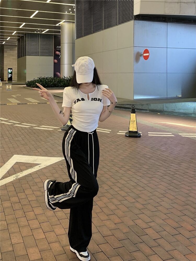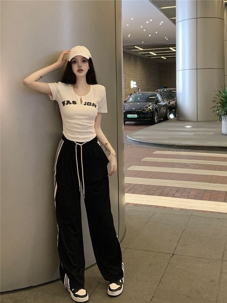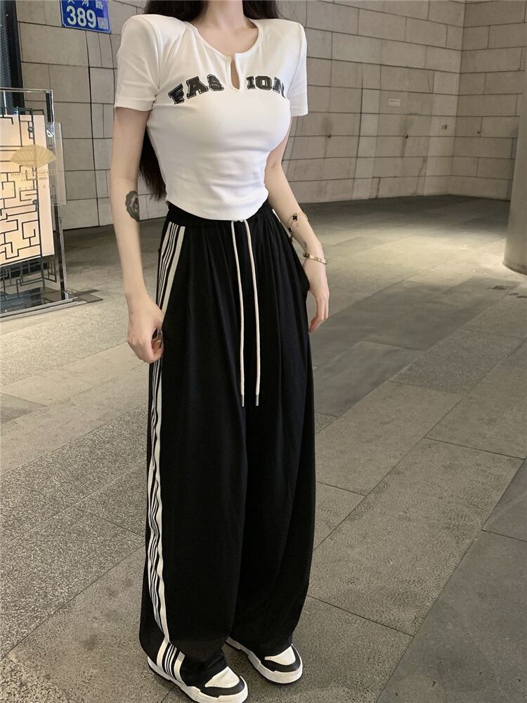ストライプドローストリングストレートカジュアルパンツレディースサマーシンセクションドレープハイウエストシンルーズスポーツワイドレッグパンツパンツ ハイウェスト 夏物 ワイドパンツ bstraw3086653381 | beaute25