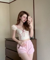 色:ミルキーホワイト太郎,クランベリージャム,グレーのショートパンツ