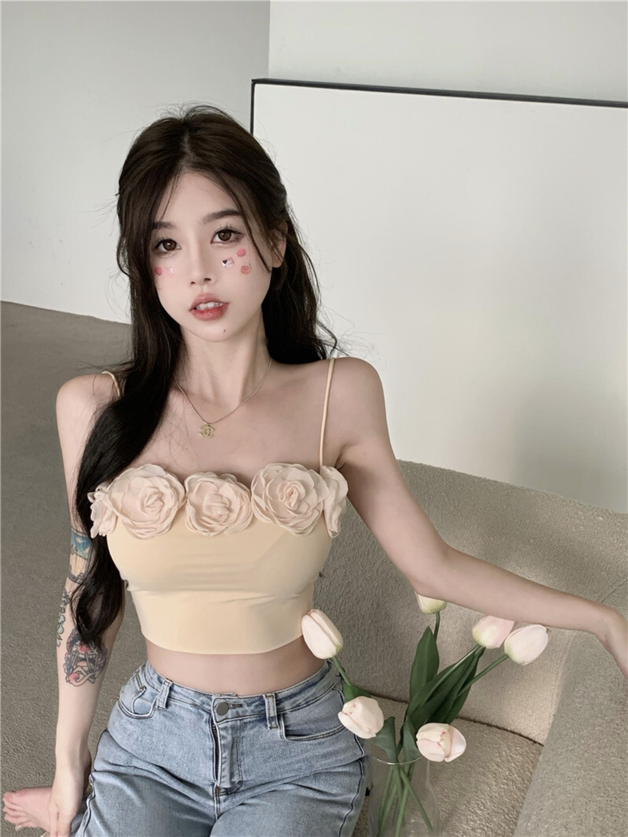 立体花小キャミソール女性夏ショートセクション甘い純粋な欲望が肩から風を吹き飛ばすセクシーなインナートップトップアウターウェア 大人ガーリー スウィート キュート カジュアル サマー 夏物 ピュア フラワーデザイン bstraw91510621907 | beaute25