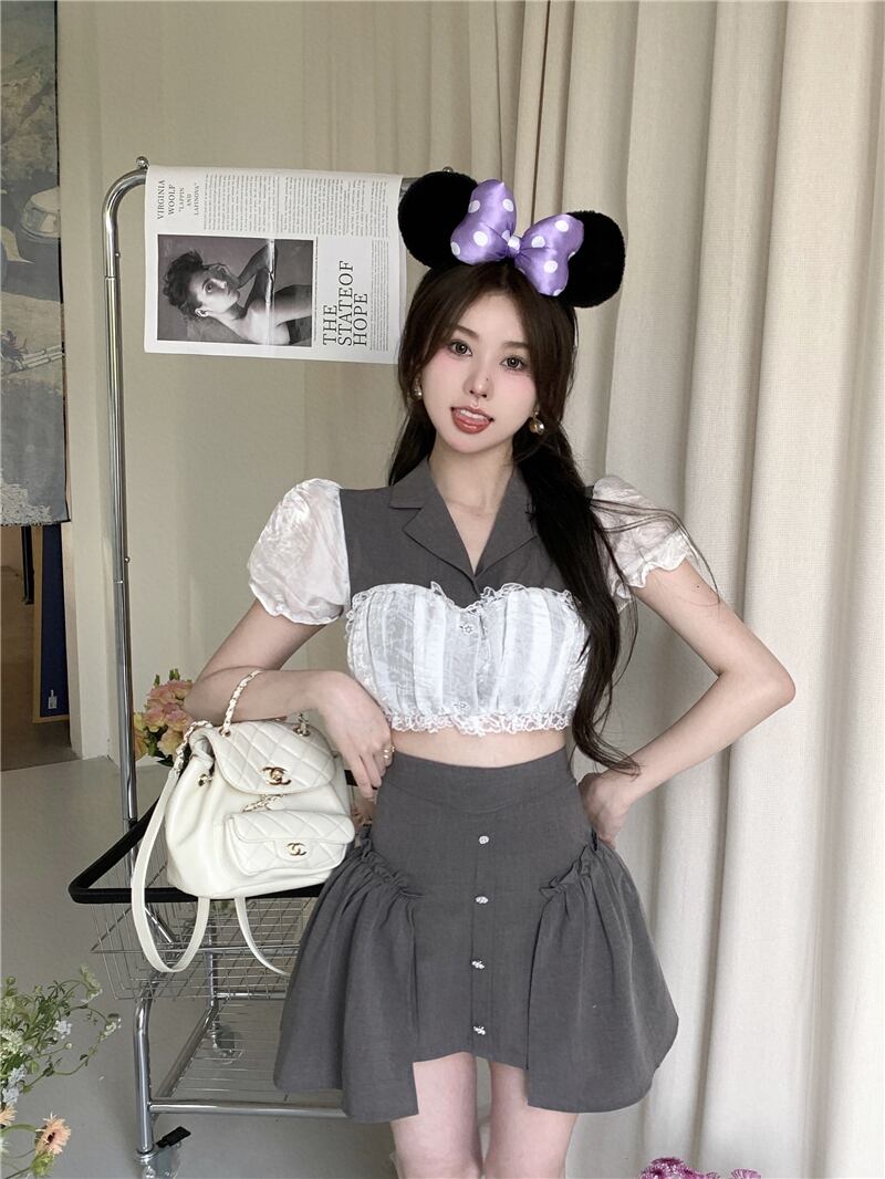 スウィートスパイスレース気質レース半袖シャツトップ女性夏ピュアデザイアスーツウエストスカートツーピースセット ショート ハーフスリーブ 大人ガーリー キュート カジュアル サマー 夏物 bstraw83283046652 | beaute25