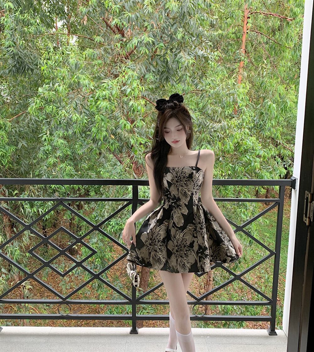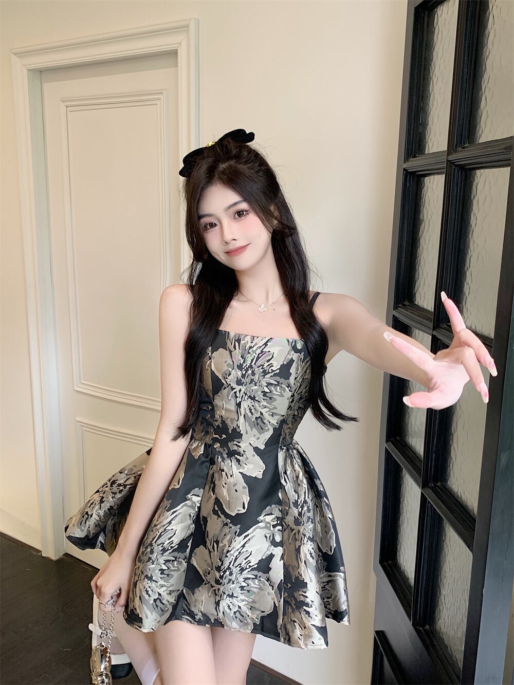スウィートスパイスブラックレトロ刺繡スリングドレスレディースサマーフレンチテンペラメントセンスAラインショートスカート レッド 刺繍 大人ガーリー キュート カジュアル 夏物 bstraw6619571123 | beaute25