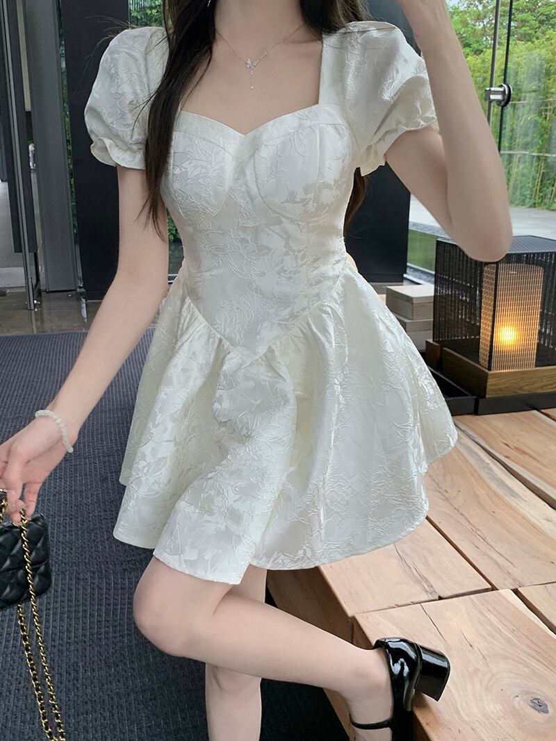 蝶ネクタイドレス女性の夏の宮殿スタイルフランスの甘いウエスト気質ふわふわプリンセスショートスカート レース 大人ガーリー スウィート キュート カジュアル サマー 夏物 bstraw41770034528 | beaute25
